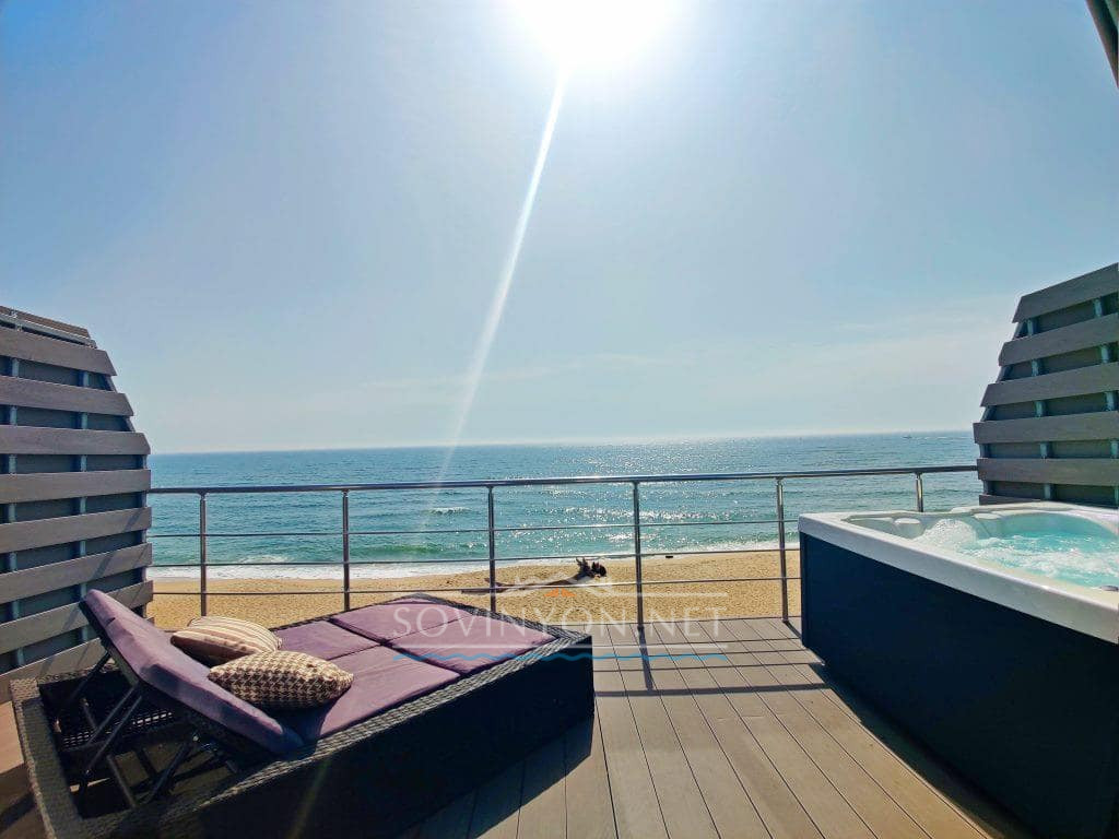 Стильные и современные апартаменты расположены в первой линии от моря и имеют прямой выход на пляж и зону бассейна.