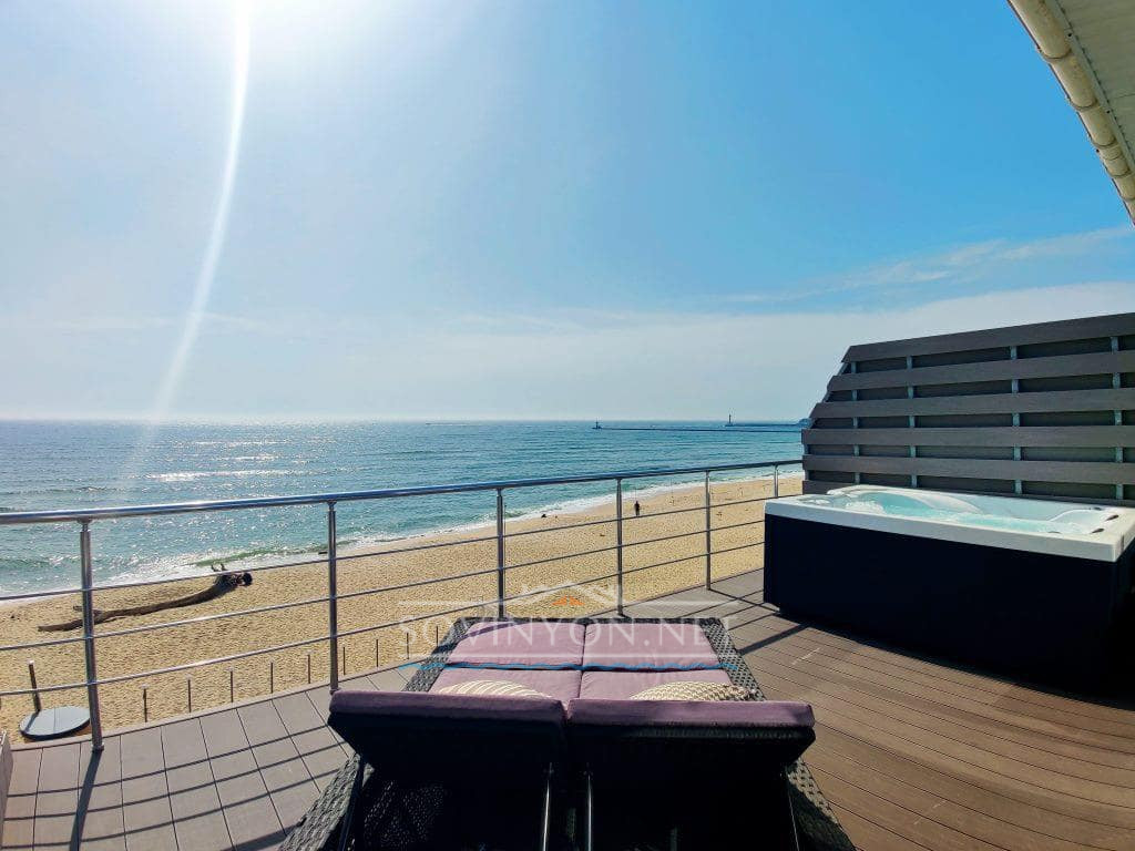 В вашем распоряжении просторная терраса с большим джакузи и шезлонгами, зона отдыха с летней мебелью, телевизором и раздвижной системой панорамных окон для отдыха в любое время года.