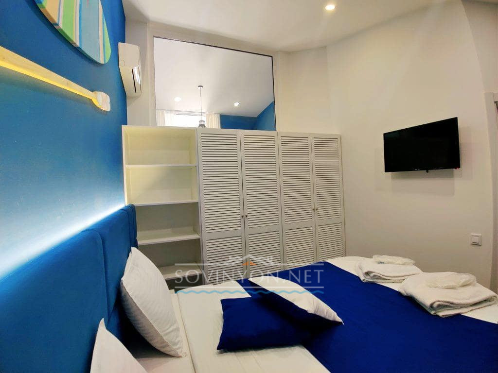 Две раздельные спальни оснащены кроватями king-size с ортопедическими матрасами, телевизором и кондиционером.