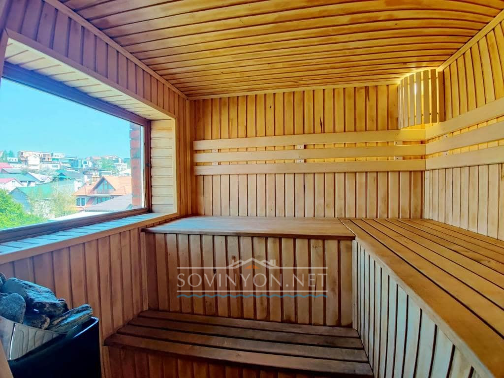 Пользование бесперебойным Wi-Fi, бассейном и джакузи бесплатно. Финская сауна в апартаментах и чан на песке оплачиваются дополнительно.