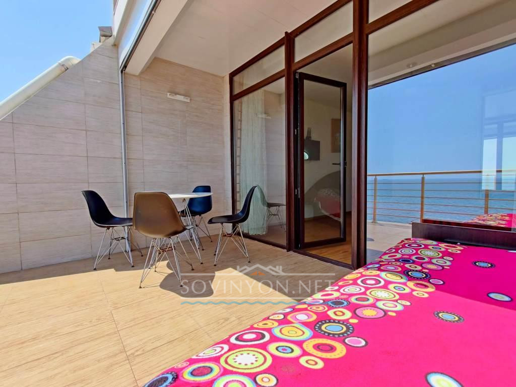 Апартаменты находятся в 150 метрах от песчаного пляжа и имеют шикарный панорамный вид на море. Все помещения в апартаментах находятся на одном уровне, что очень удобно для проживания с детьми. В вашем распоряжении: