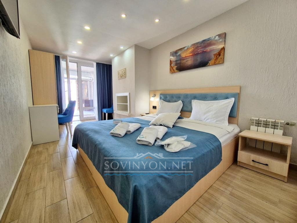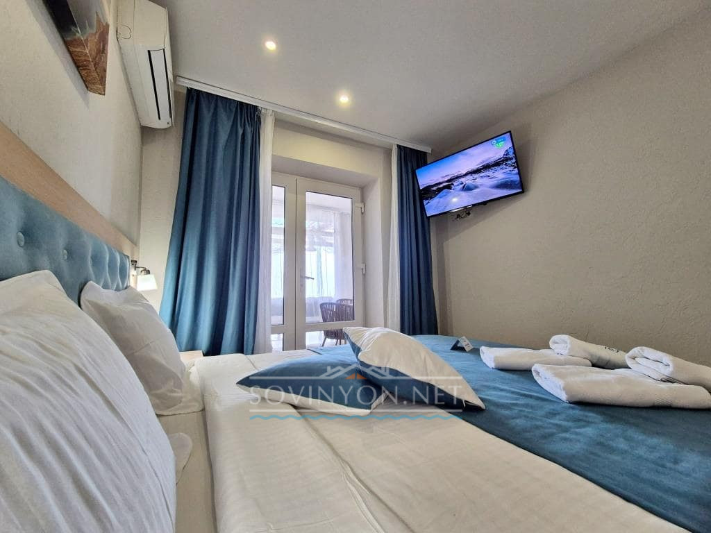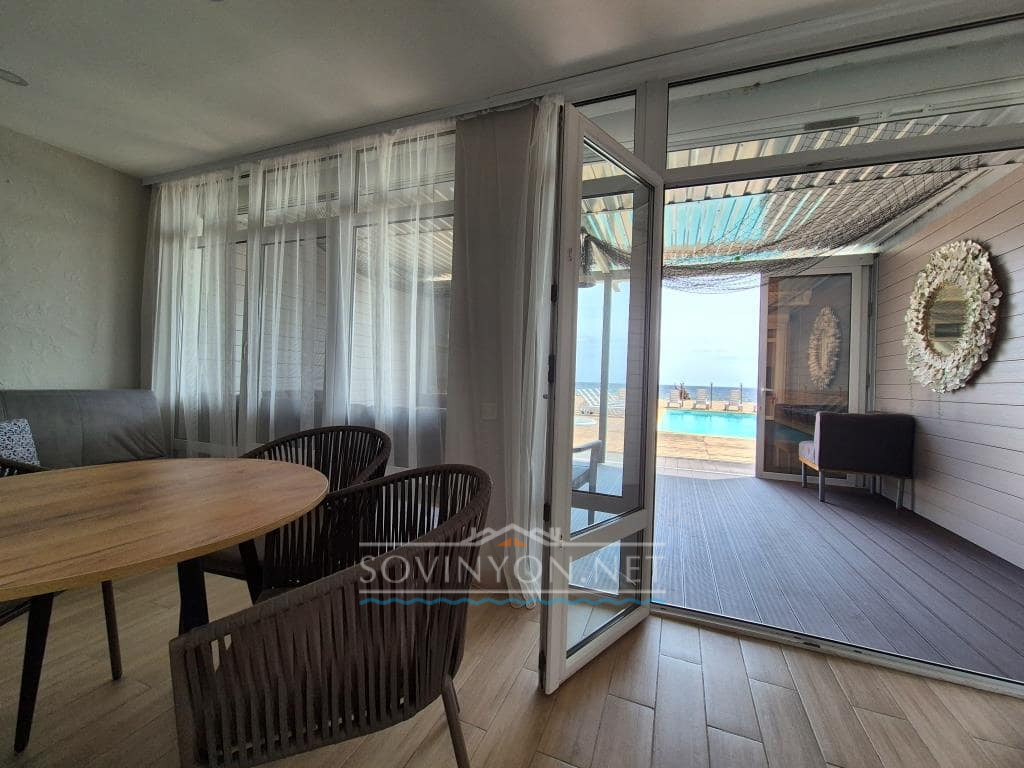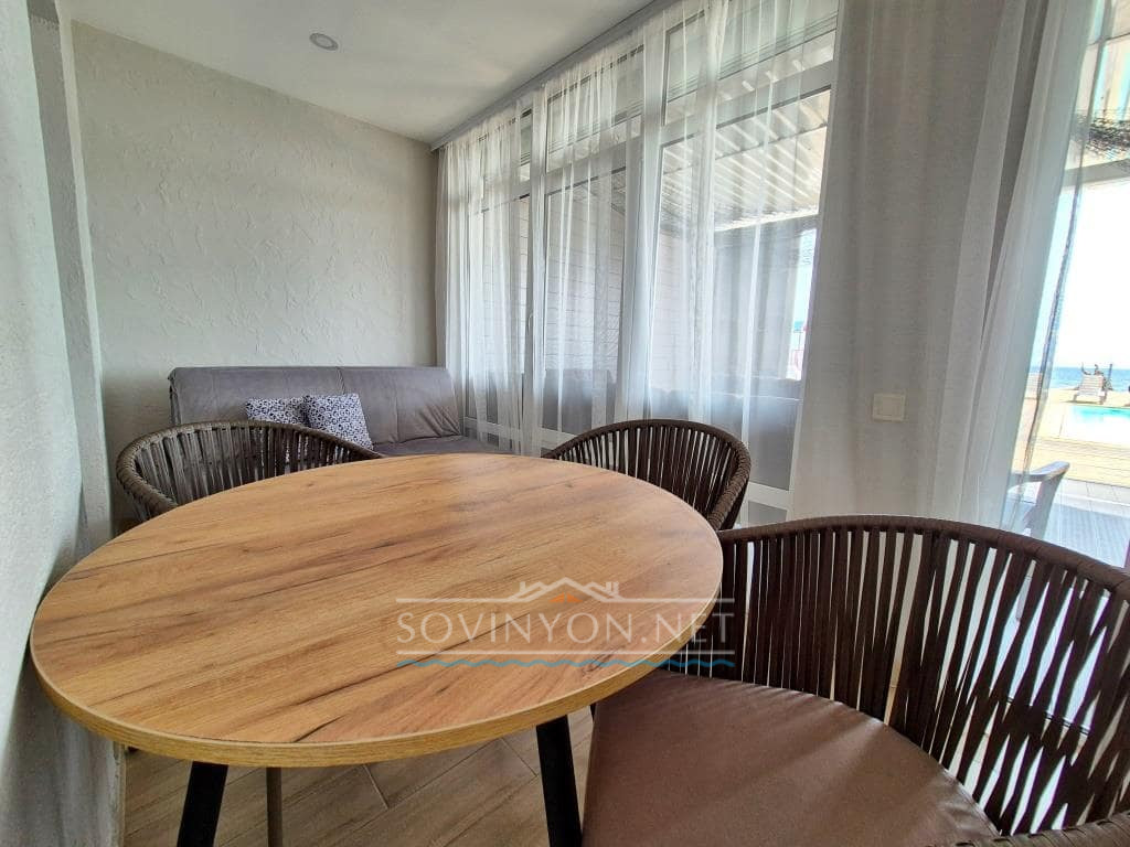 Современные апартаменты расположены в первой линии от моря на песчаном пляже с собственной беседкой и выходом к бассейну с джакузи.