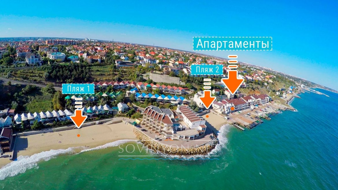 Возле апартаментов имеется два частных пляжа для жителей Совиньона. Эти пляжи являются одними из лучших в Одессе в виду нескольких факторов: