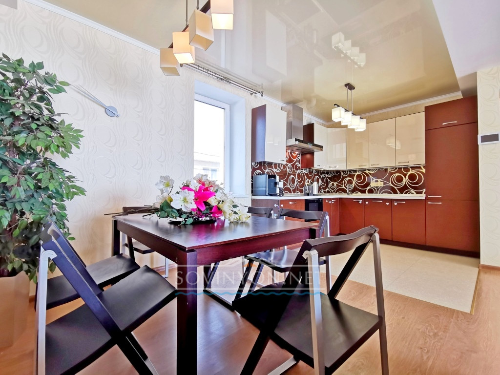 В вашем распоряжении собственный двор с мангалом (шампура, решетки, опахало), качественной летней мебелью, зонтиком и шезлонгами на которых можно загорать как на пляже так и во дворе.
