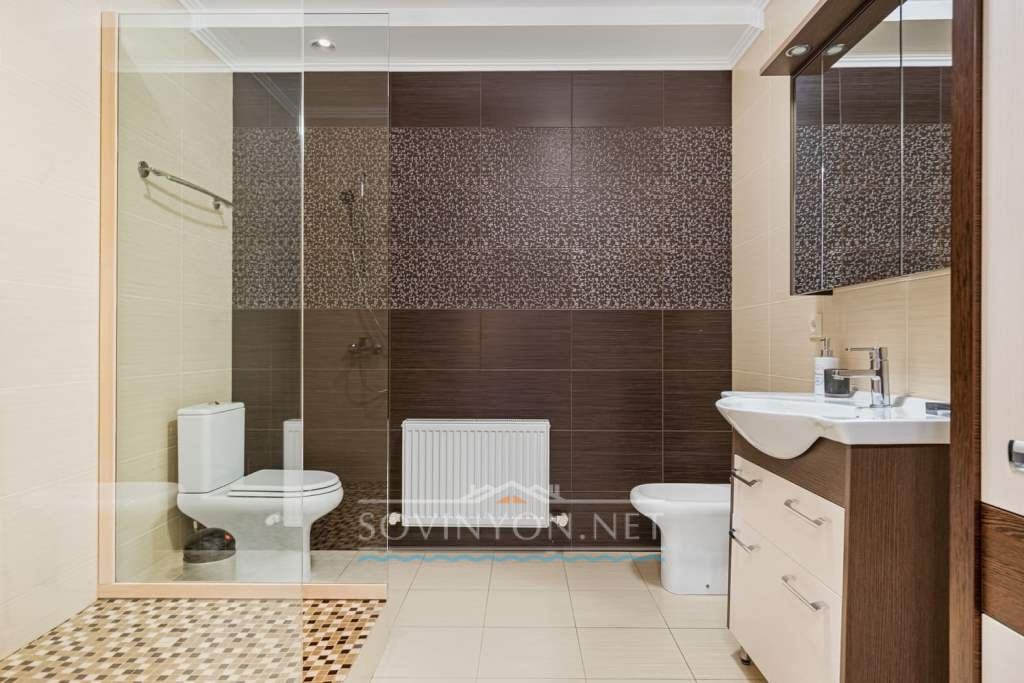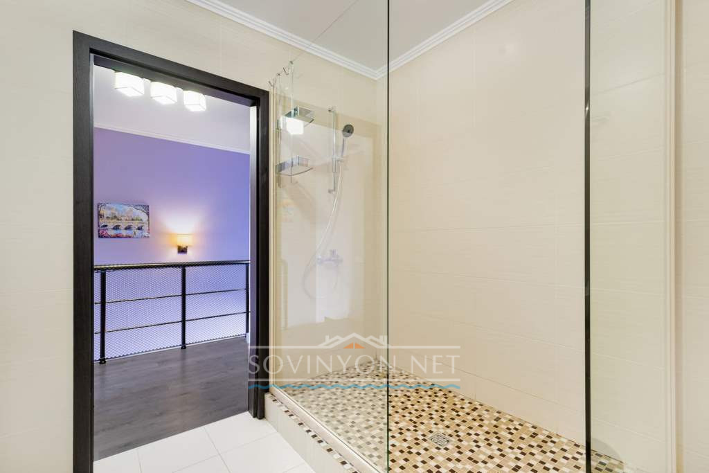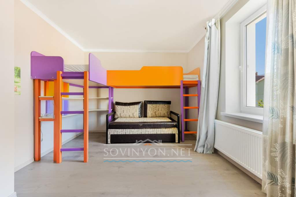 На первом этаже — расположена спальня-гостиная с удобным двойным диваном и выходом во двор, санузел, прихожая. Гараж с автоматическими роллетными воротами.