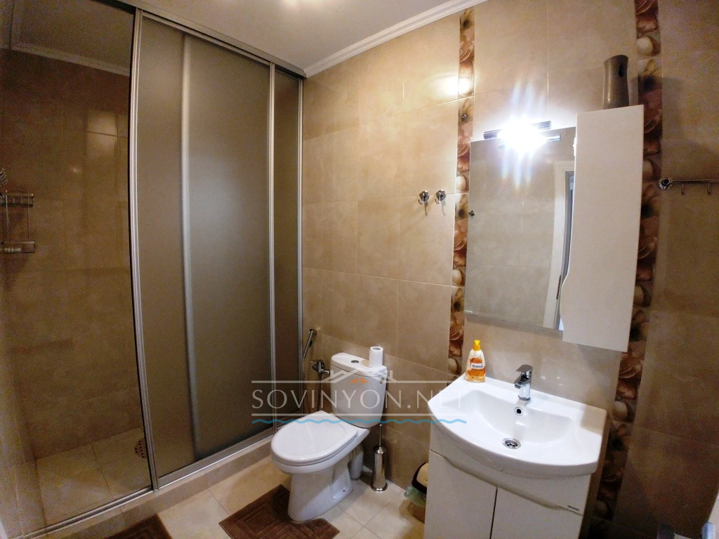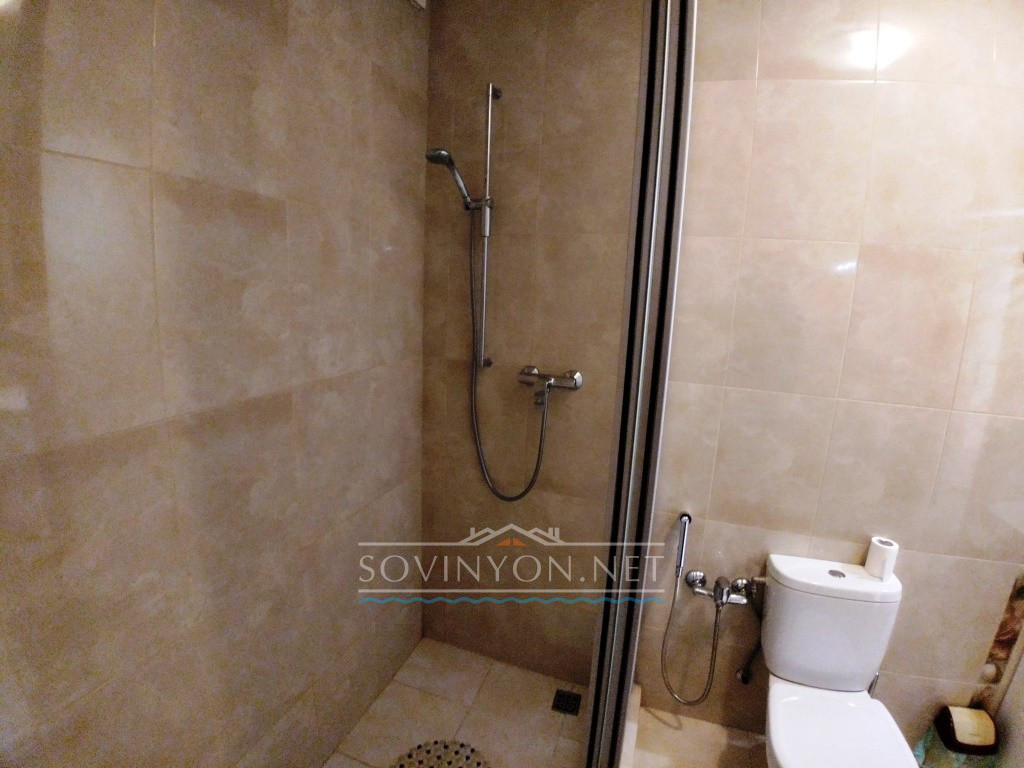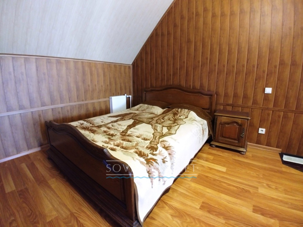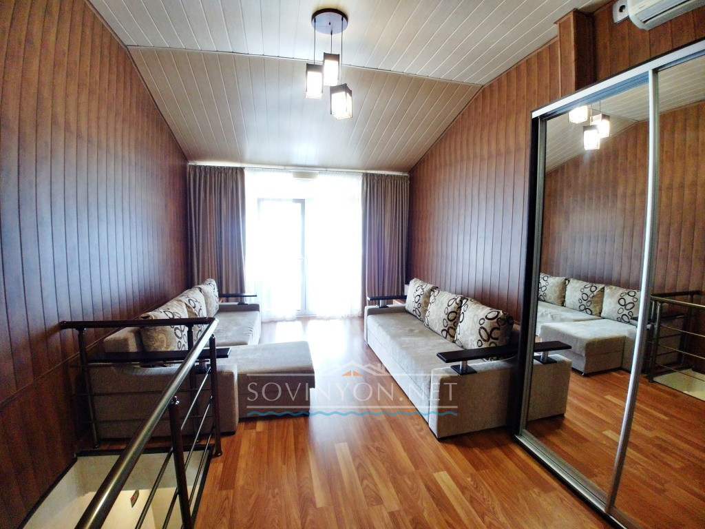 1 этаж — кухня со всем необходимым оборудованием, посудой и тд., просторный санузел, спальня с большой двуспальной кроватью, своя гардеробная, кондиционер, TV, выход на террасу первого этажа с шикарным видом на море, качелей, шезлонгами и другой летней мебелью