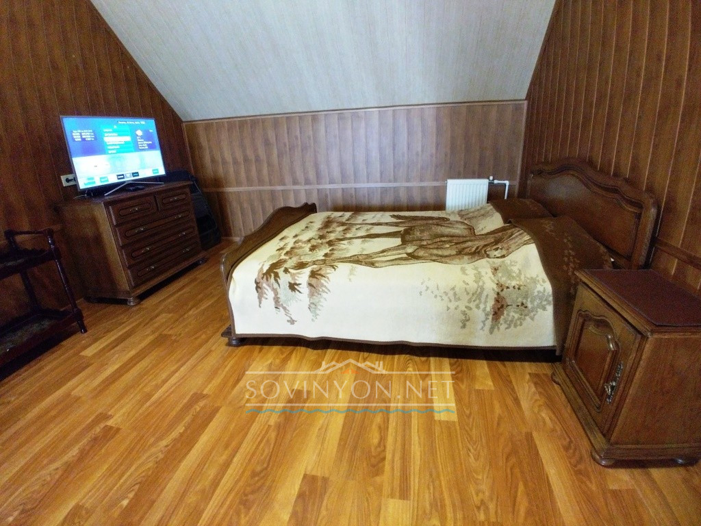 2 этаж — спальня с двумя двуспальными диванами, гардеробный шкаф, кондиционер, TV, выход на террасу второго этажа с панорамным обозрением морского залива и летней мебелью.