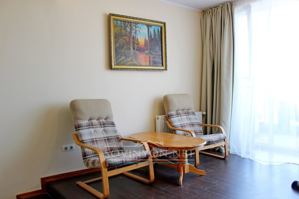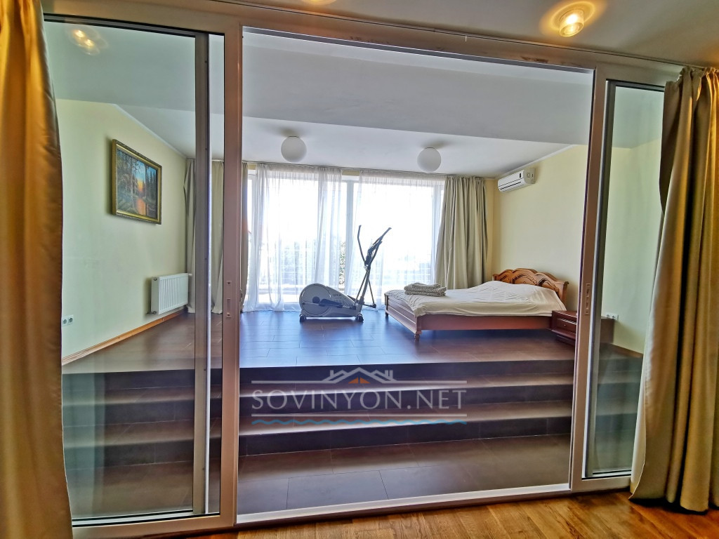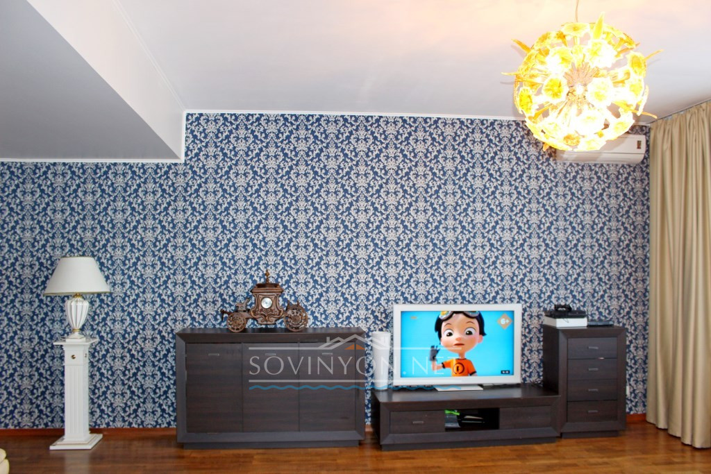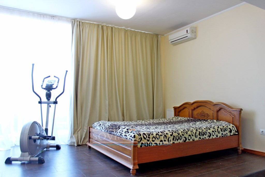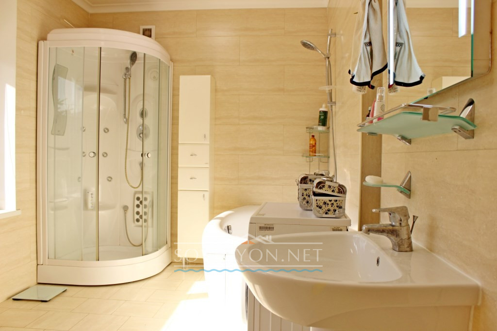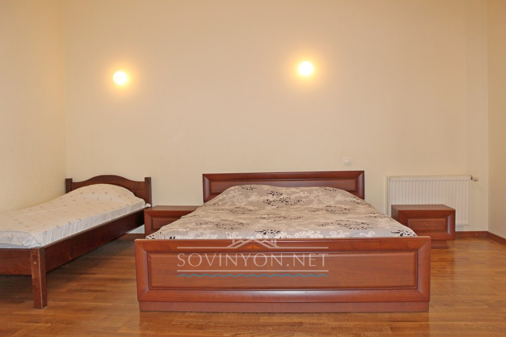 2 этаж второй санузел(душевая кабина, большая ванная, биде) 2 спальни разделённые перегородкой с большими двойными кроватями, и одной односпальной кроватью, кондиционером, телевизором. Так же со спальни есть выход на свой просторный балкон.