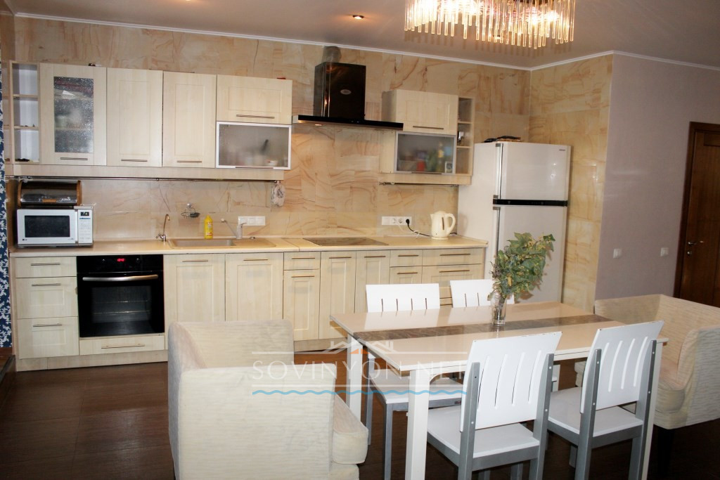 Коттедж расположен в кооперативе Совиньон 1. Территория находится под круглосуточной охраной и видеонаблюдением 24/7. Также действует пропускной режим на въезде. Это гарантирует спокойствие и безопасность пребывания.
