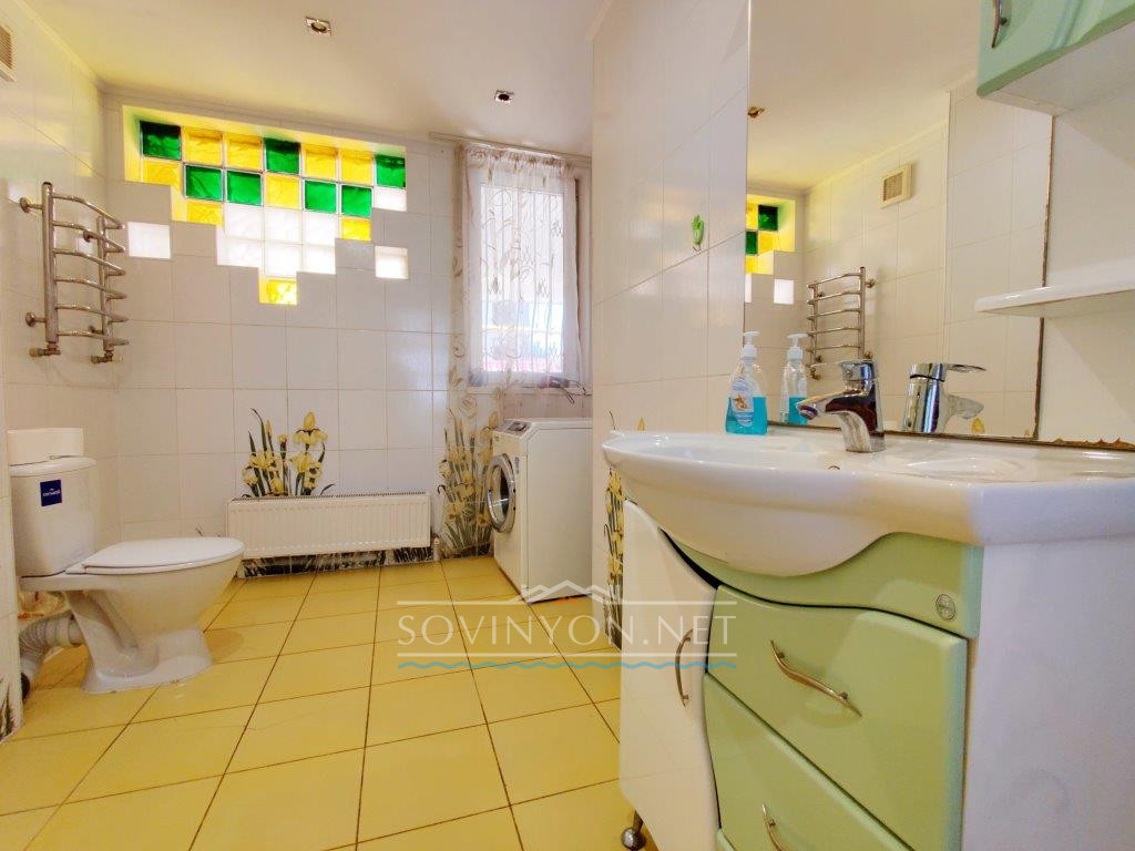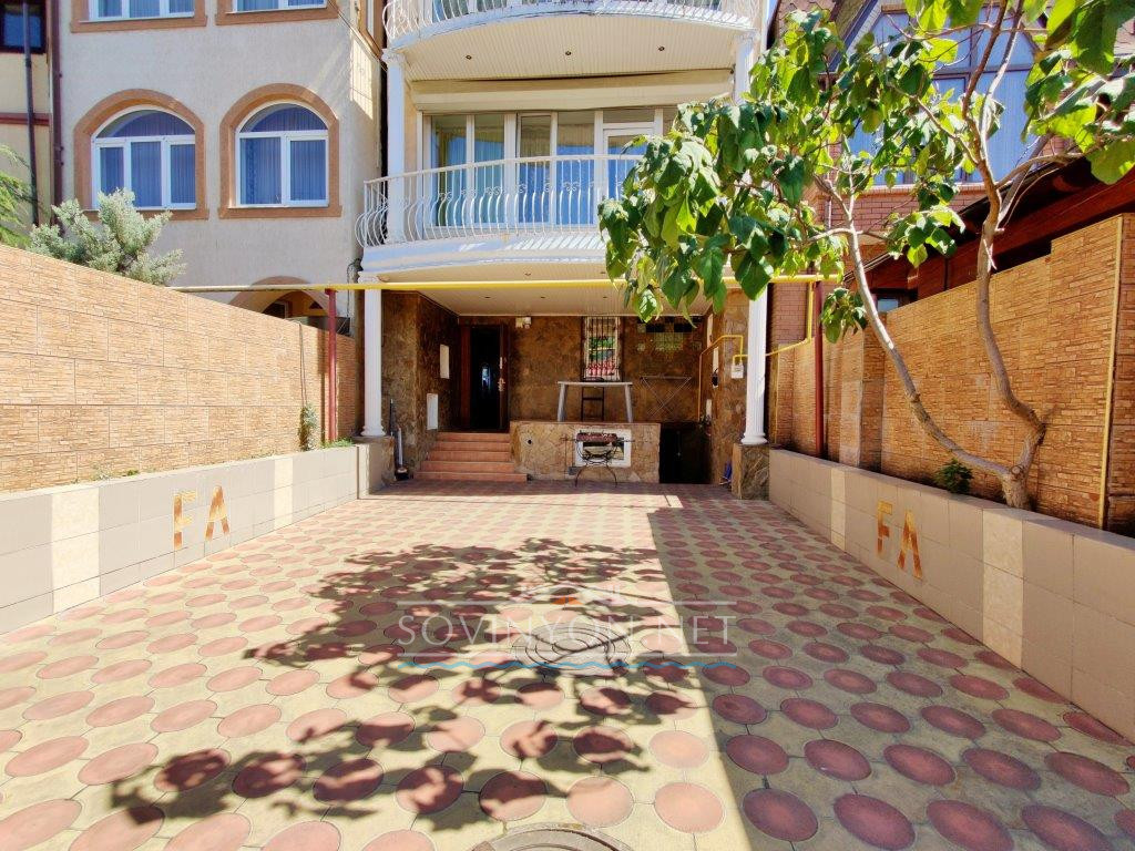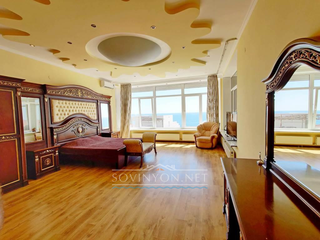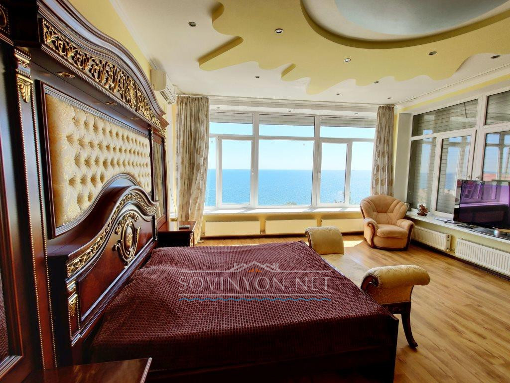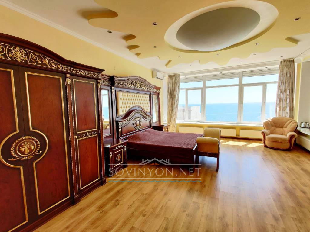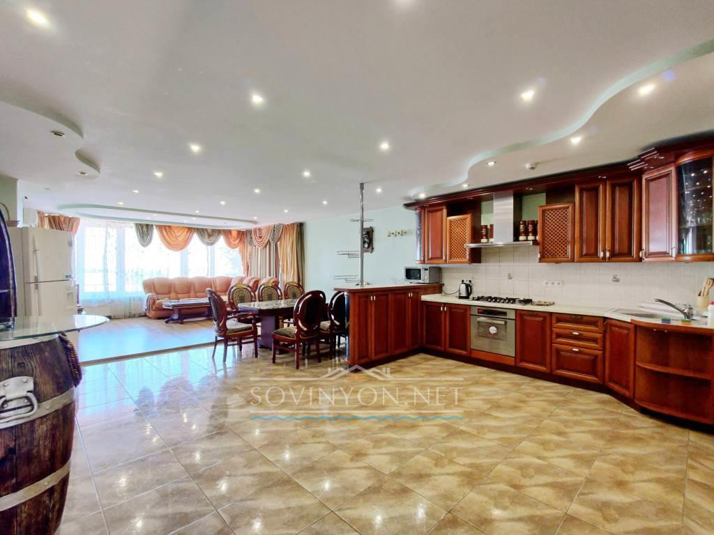 В доме 4 этажа, кухня-гостиная площадью 80 квадратных метров, четыре санузла, пять просторных полноценных спален и шикарная терраса с которой открывается исключительный вид: одновременно видно мыс Большой фонтан(район Золотого Берега) и высотные дома Черноморска. Панорама на море открывается со всех этажей!