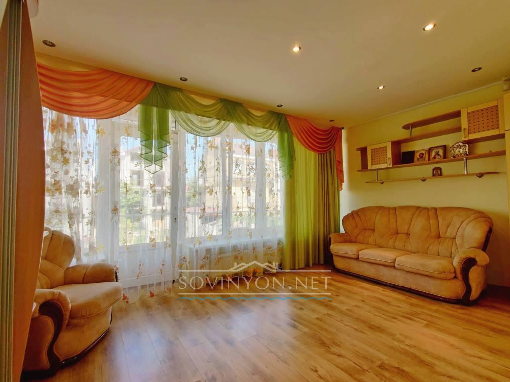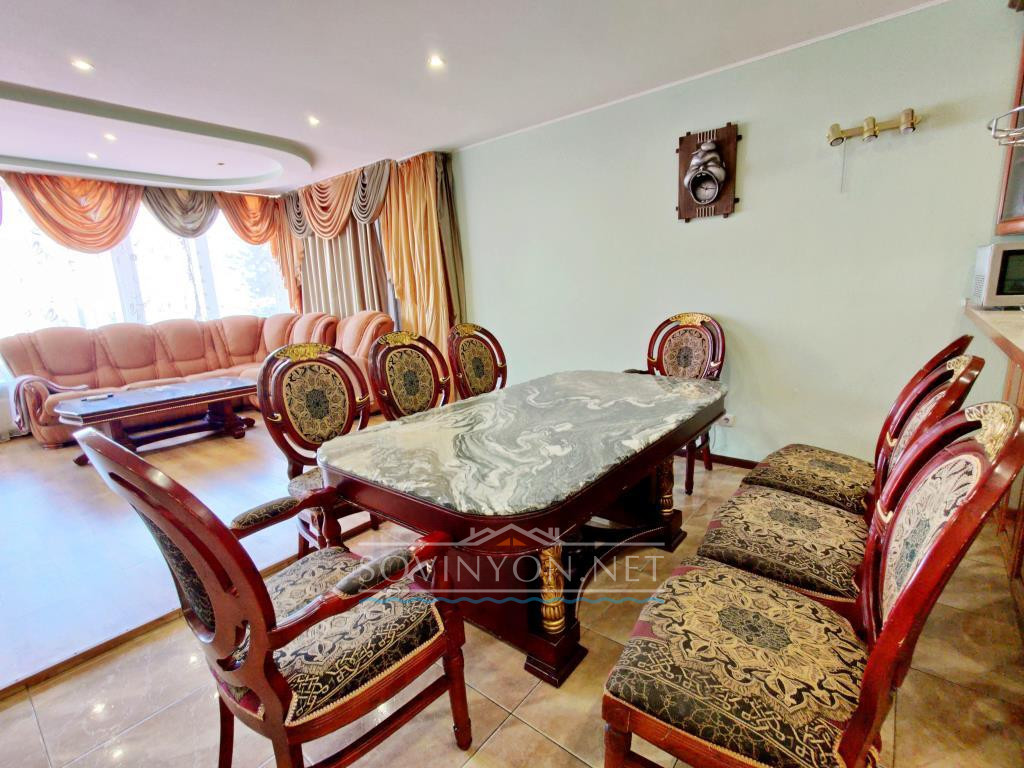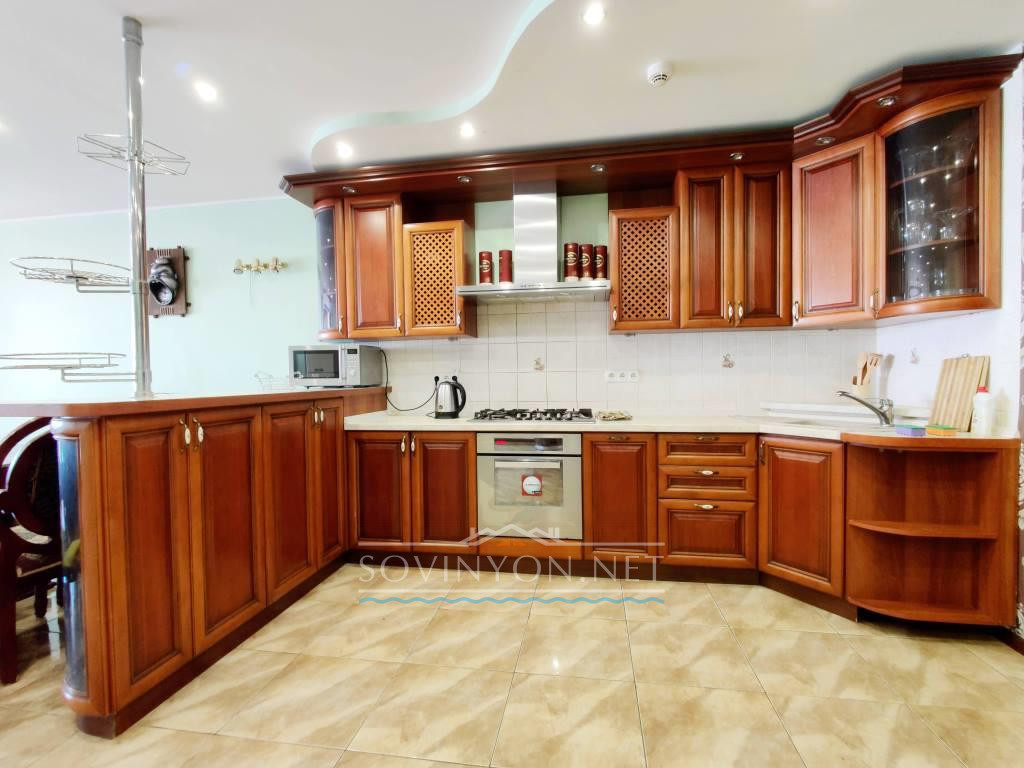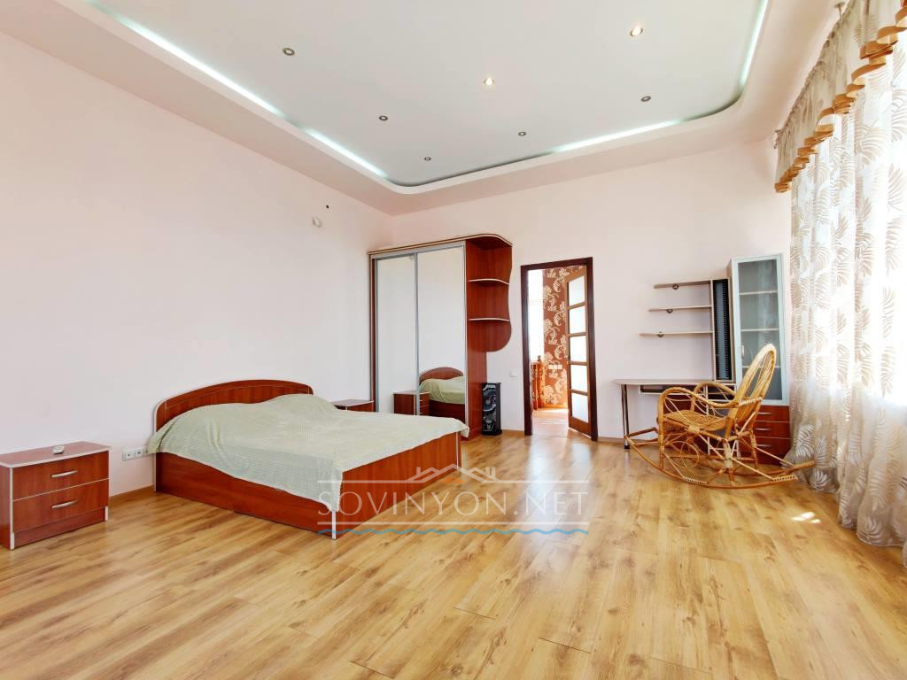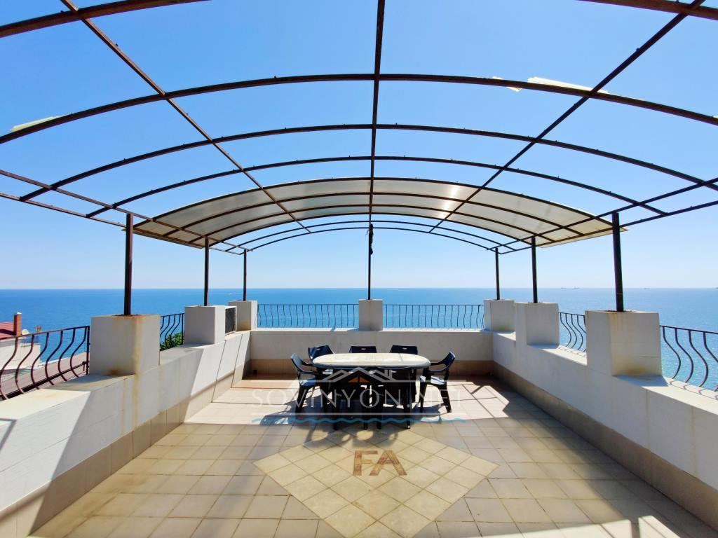 В доме 4 этажа, кухня-гостиная площадью 80 квадратных метров, четыре санузла, пять просторных полноценных спален и шикарная терраса с которой открывается исключительный вид: одновременно видно мыс Большой фонтан(район Золотого Берега) и высотные дома Черноморска. Панорама на море открывается со всех этажей!