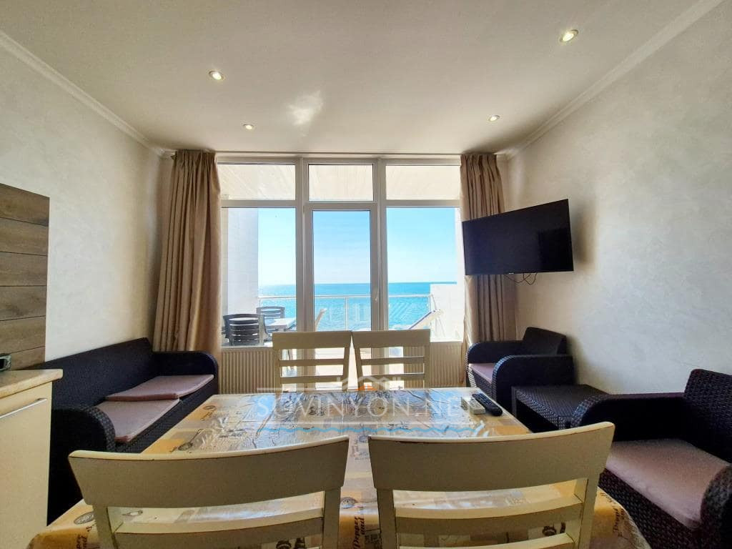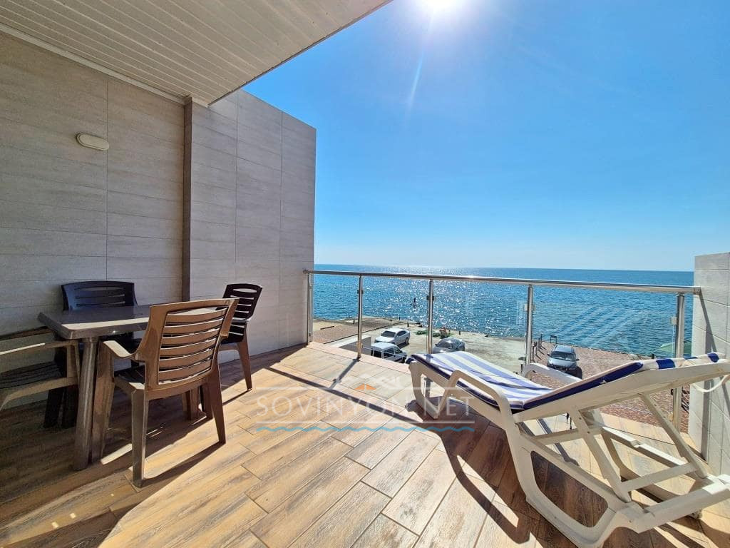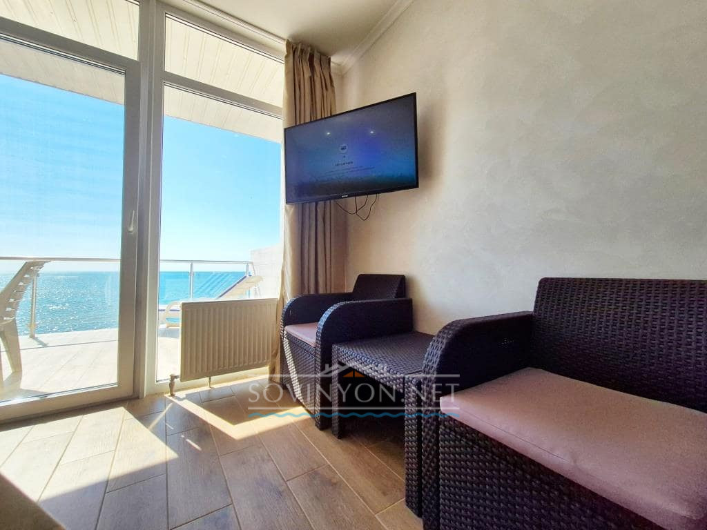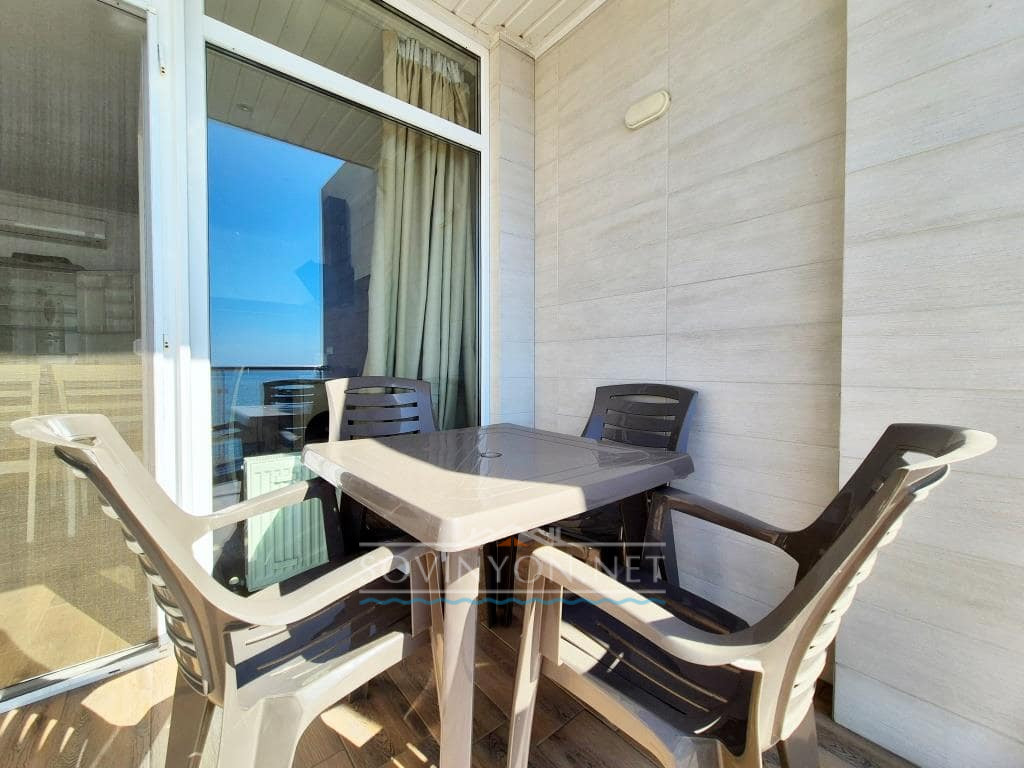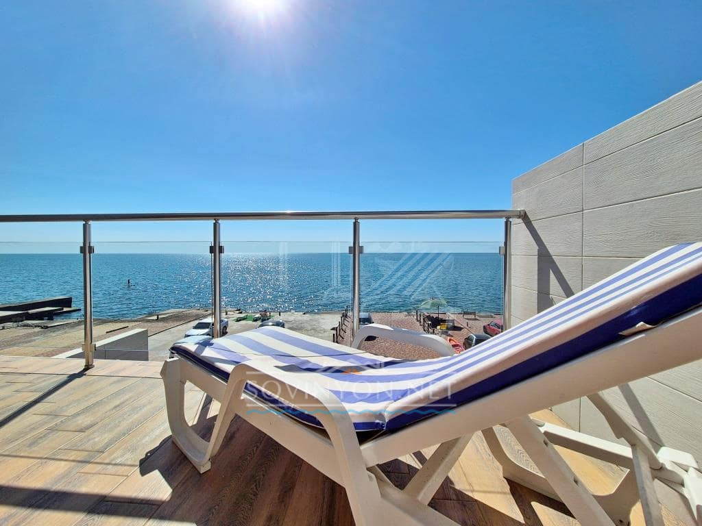 • терраса с шезлонгом на котором можно принимать солнечные ванны, стол со стульями, где можно выпить чашечку кофе утром либо поужинать всей семьёй с шикарным прямым видом на море.