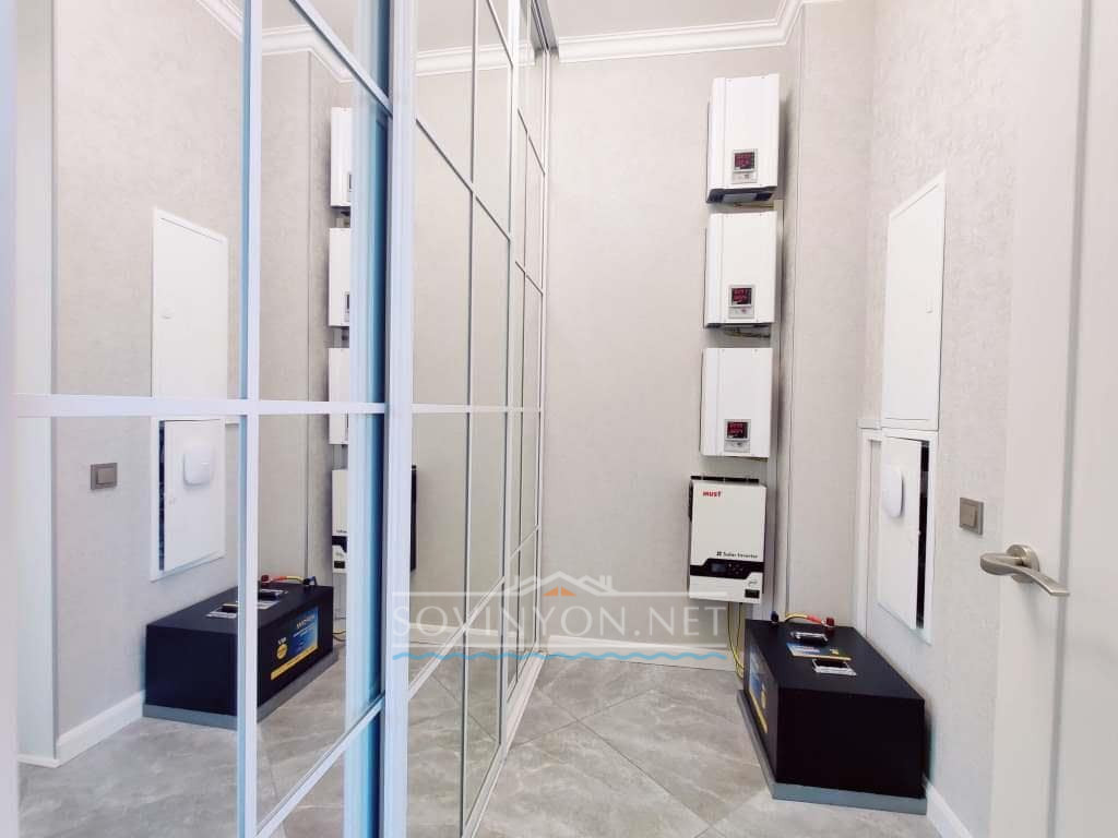 В доме имеется сигнализация, генератор и бесперебойный источник питания на гелиевых аккумуляторах большой мощности.