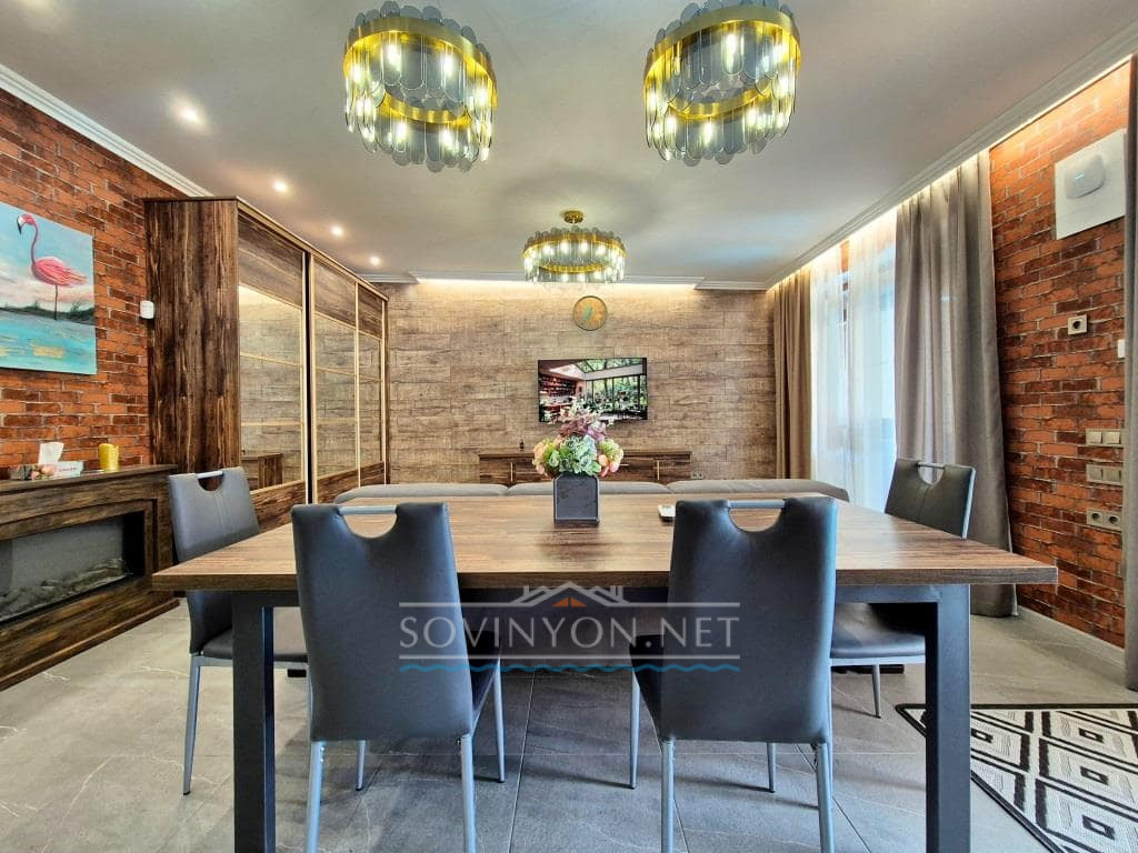 — Просторный обеденный стол со стульями