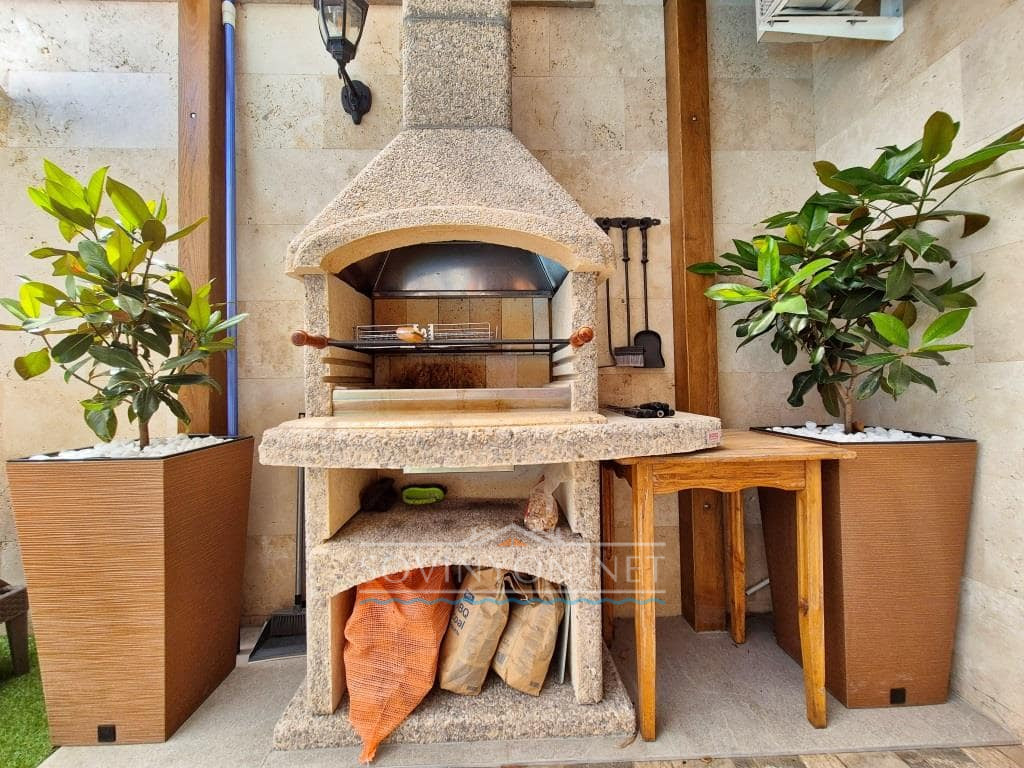 — Большая и полностью оборудованная кухня(холодильник, плита, духовой шкаф, посудомоечная машина, микроволновая печь, чайник, кухонная и сервировочная посуда, а также небьющаяся посуда для бассейна)