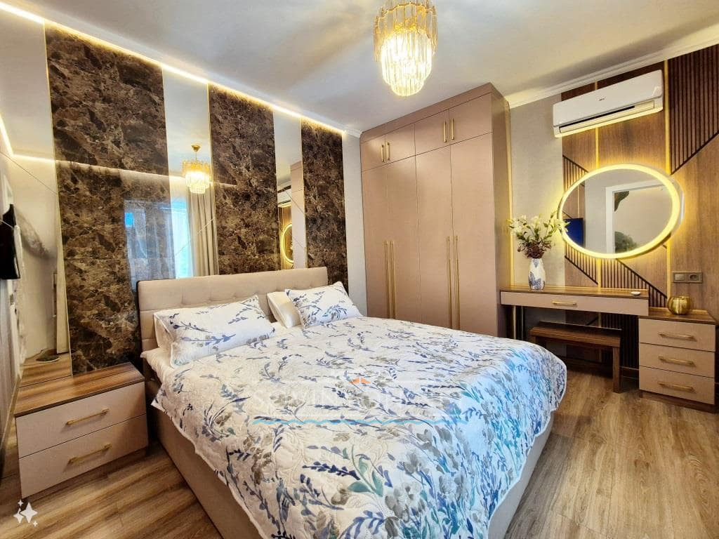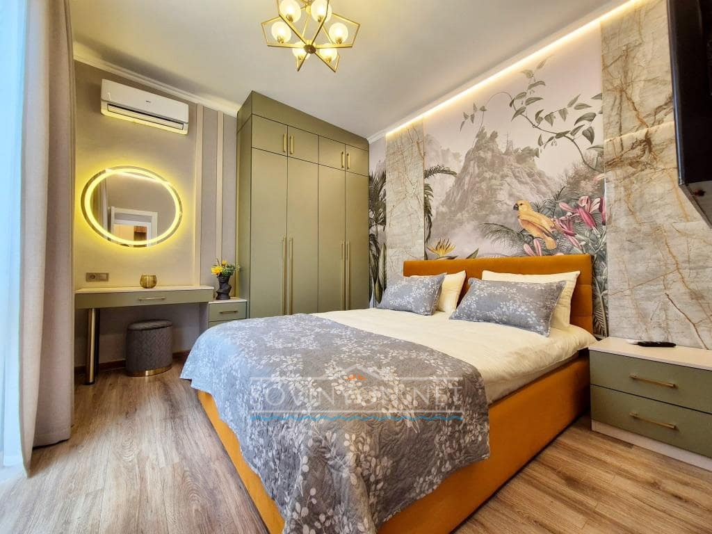 — Спальня #1 с двуспальной кроватью, кондиционером, TV, шкафом и косметическим столиком