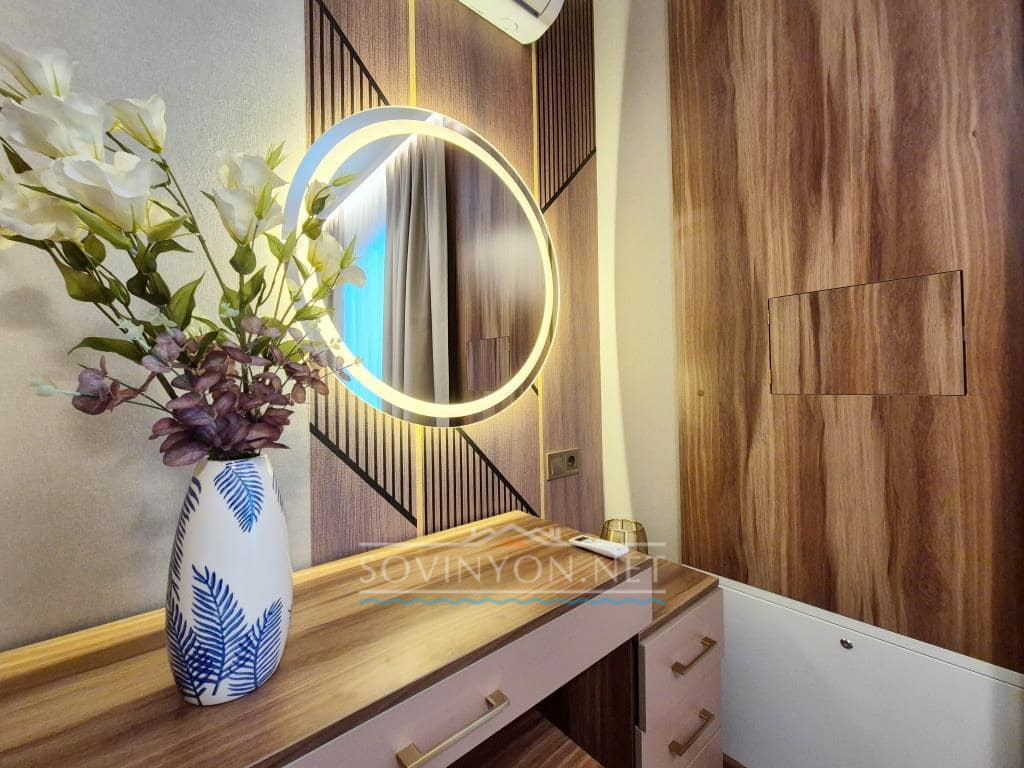 — Спальня #2 с двуспальной кроватью, кондиционером, TV, шкафом и косметическим столиком