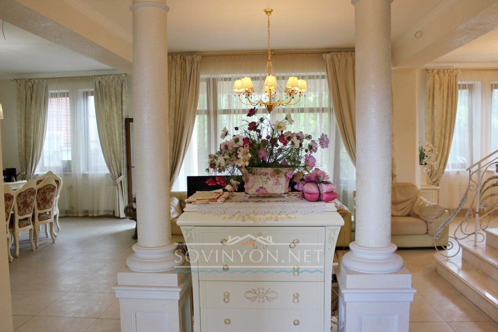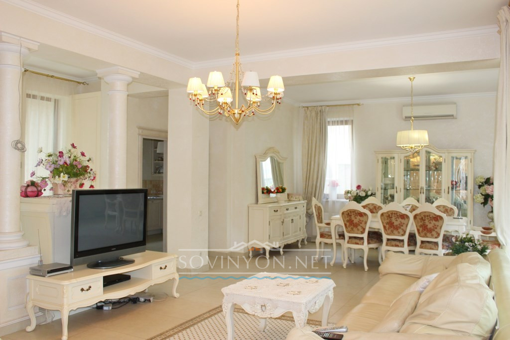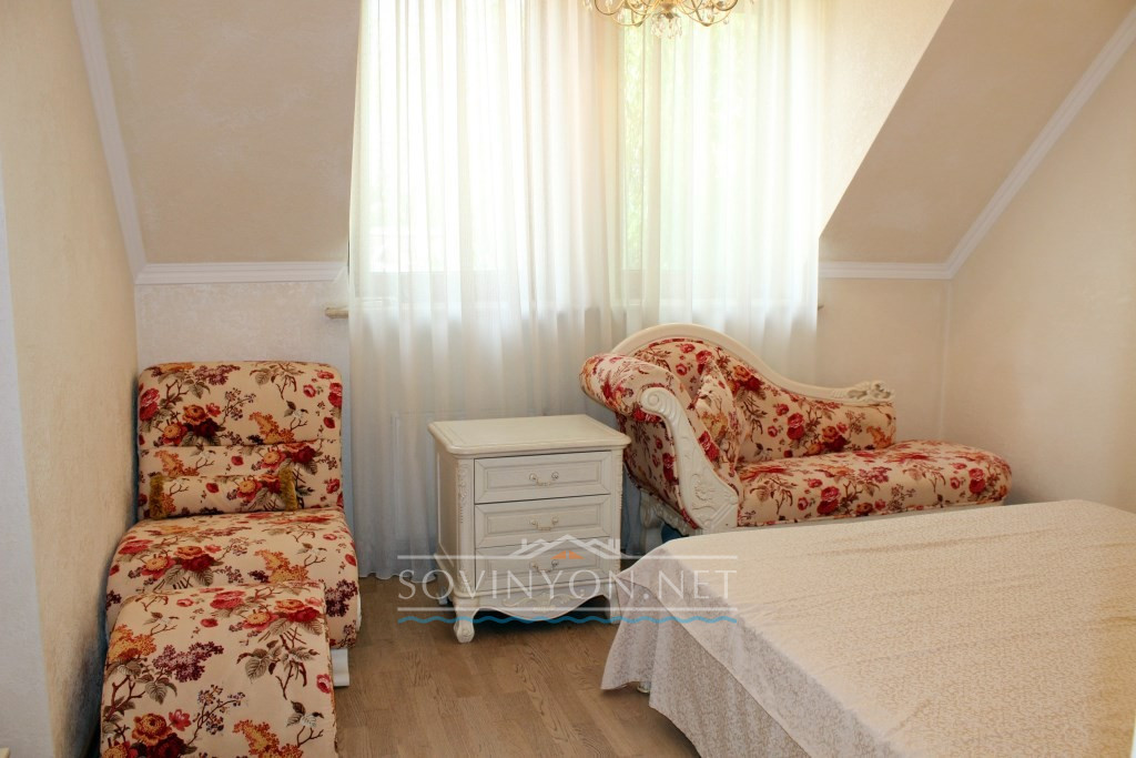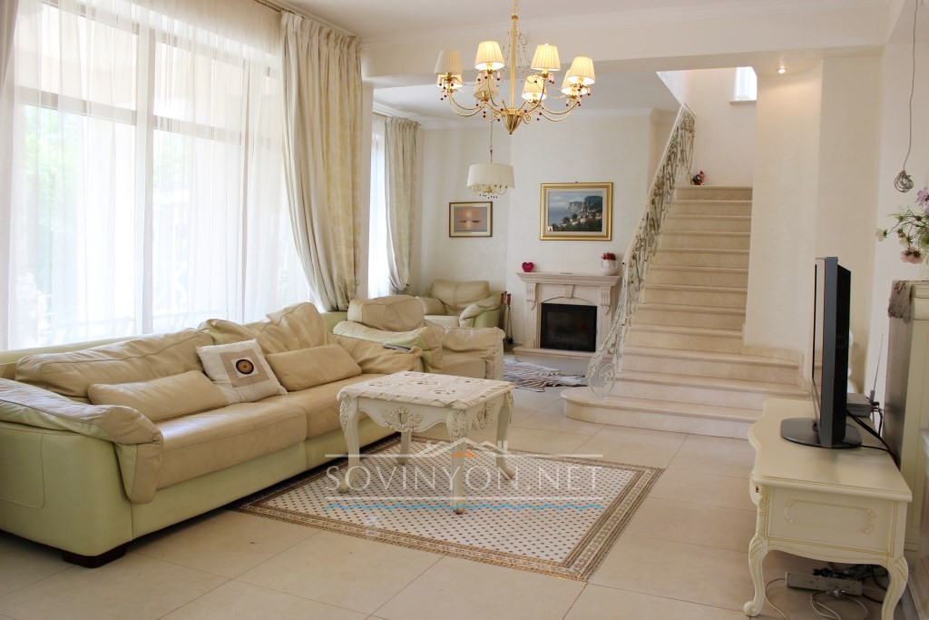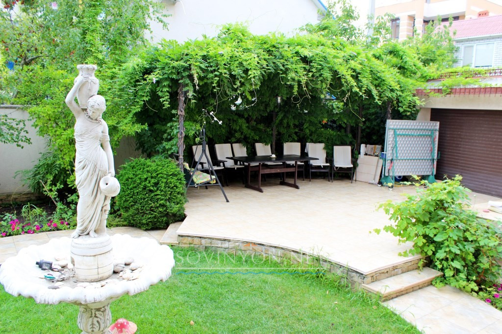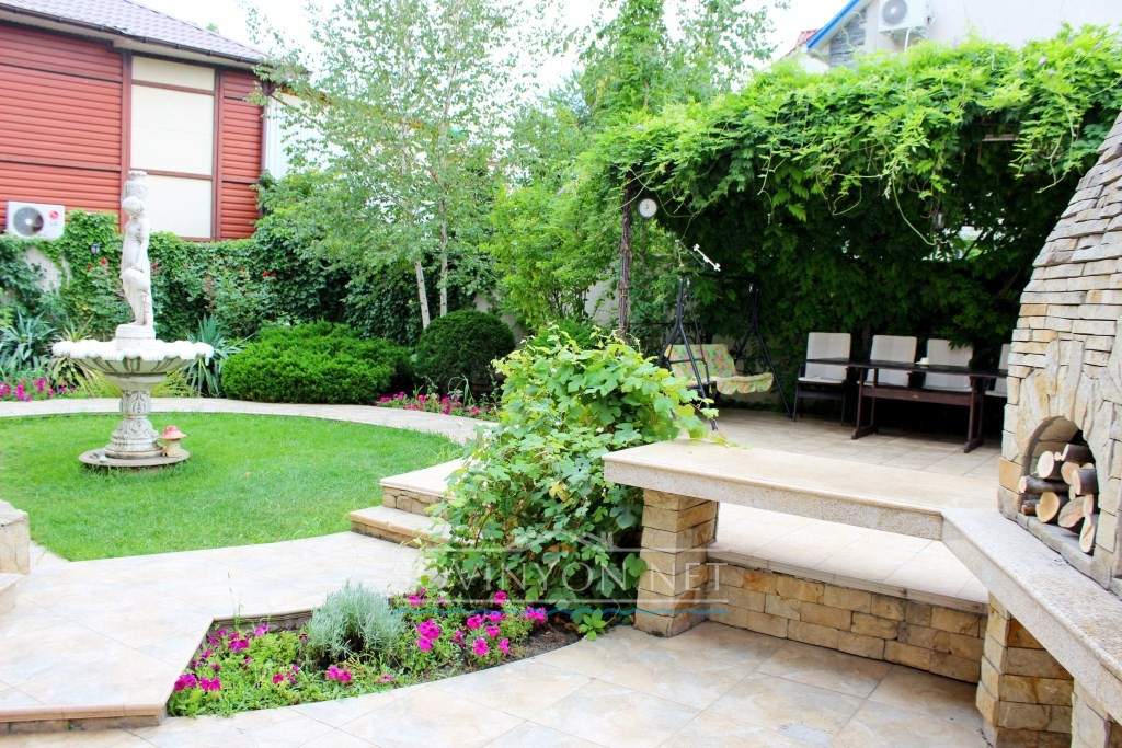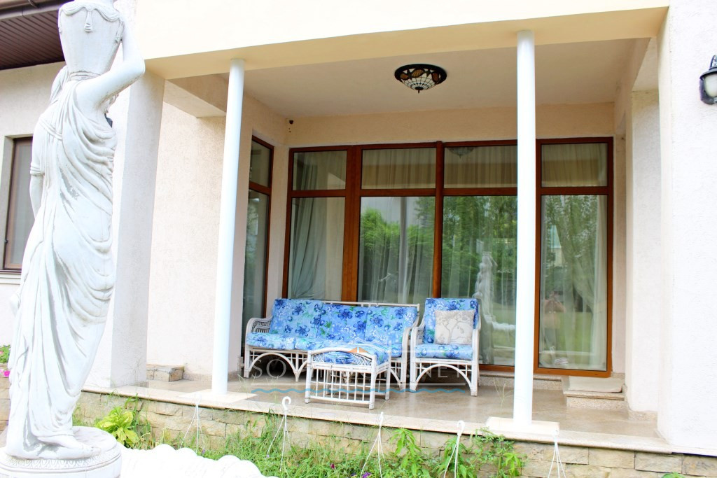 Вокруг виллы на участке ухоженная территория с террасой, зоной барбекю, летней беседкой с садовой мебелью, парковкой для двух авто, домиком охраны(может жить отдельно охрана , повар или домработница).