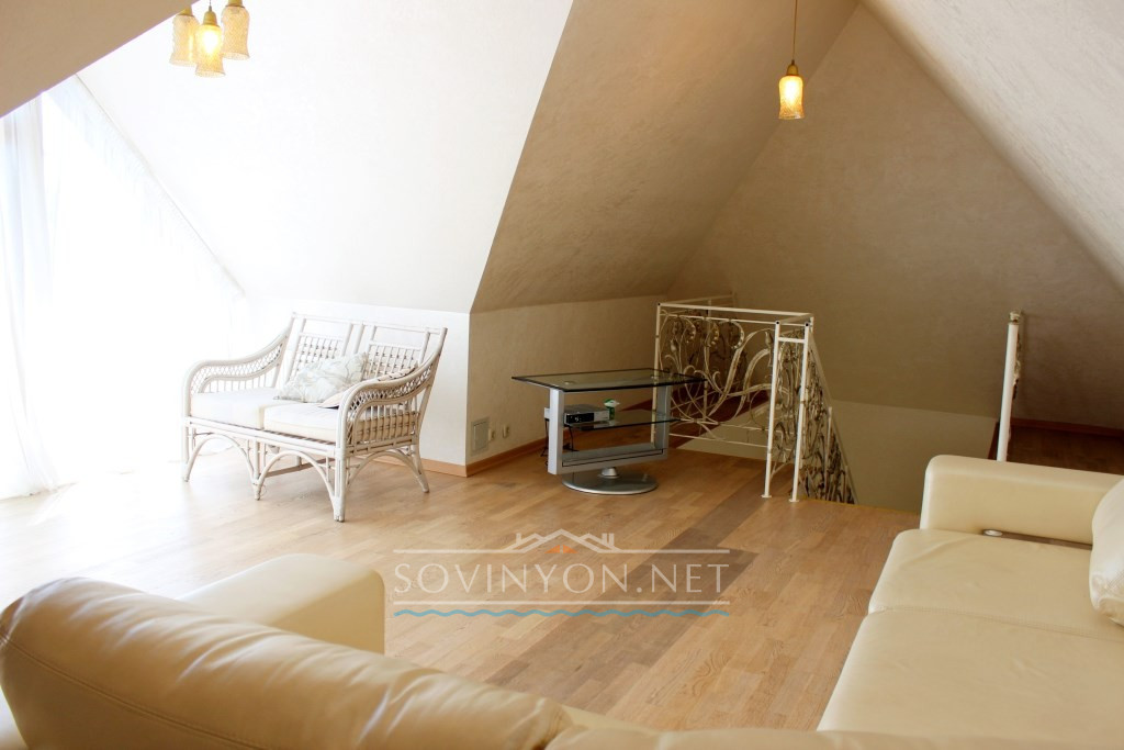 Вилла расположена на самом берегу моря в 20 шагах от большого и чистого песчаного пляжа в частном кооперативе в районе элитного коттеджного комплекса Совиньон.