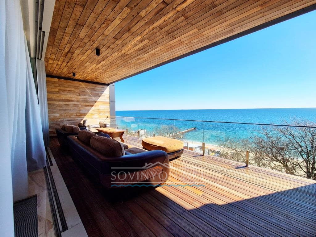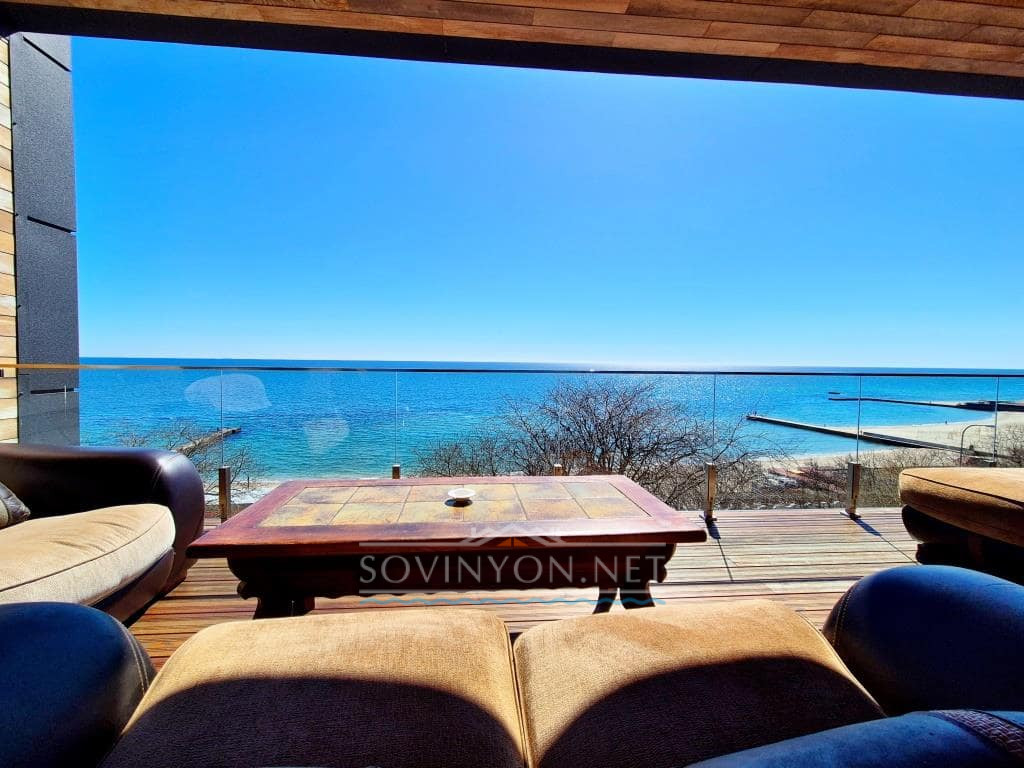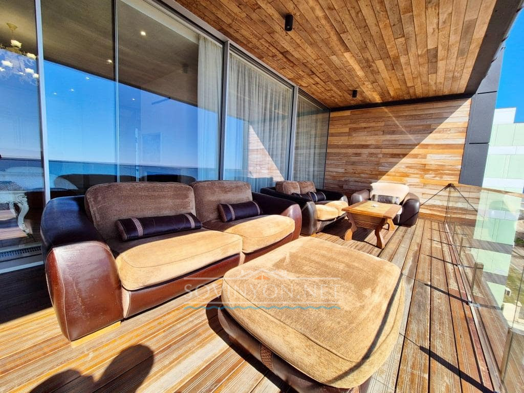 Отличная просторная терраса с роскошной летней мебелью доставит удовольствие для любителей утреннего кофе с видом на море.