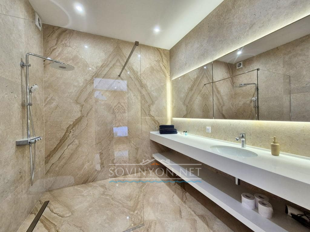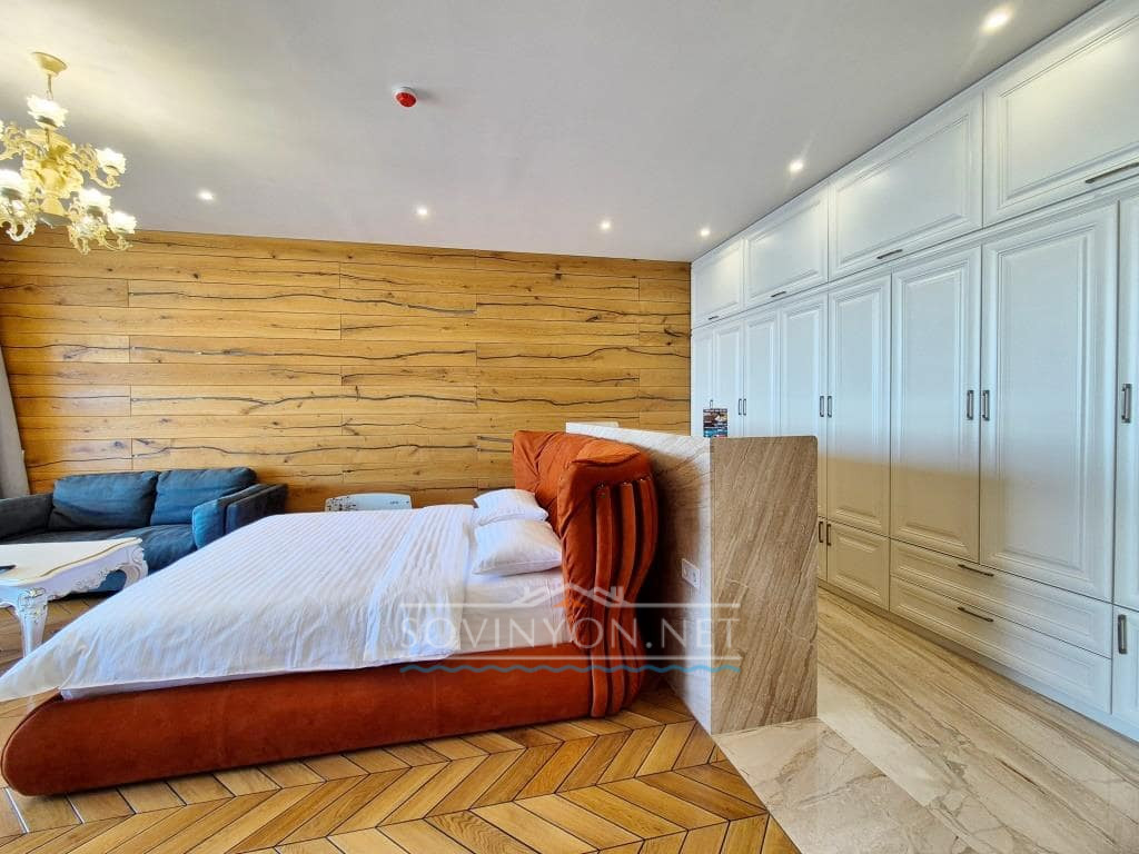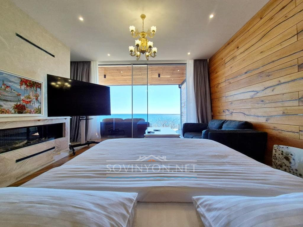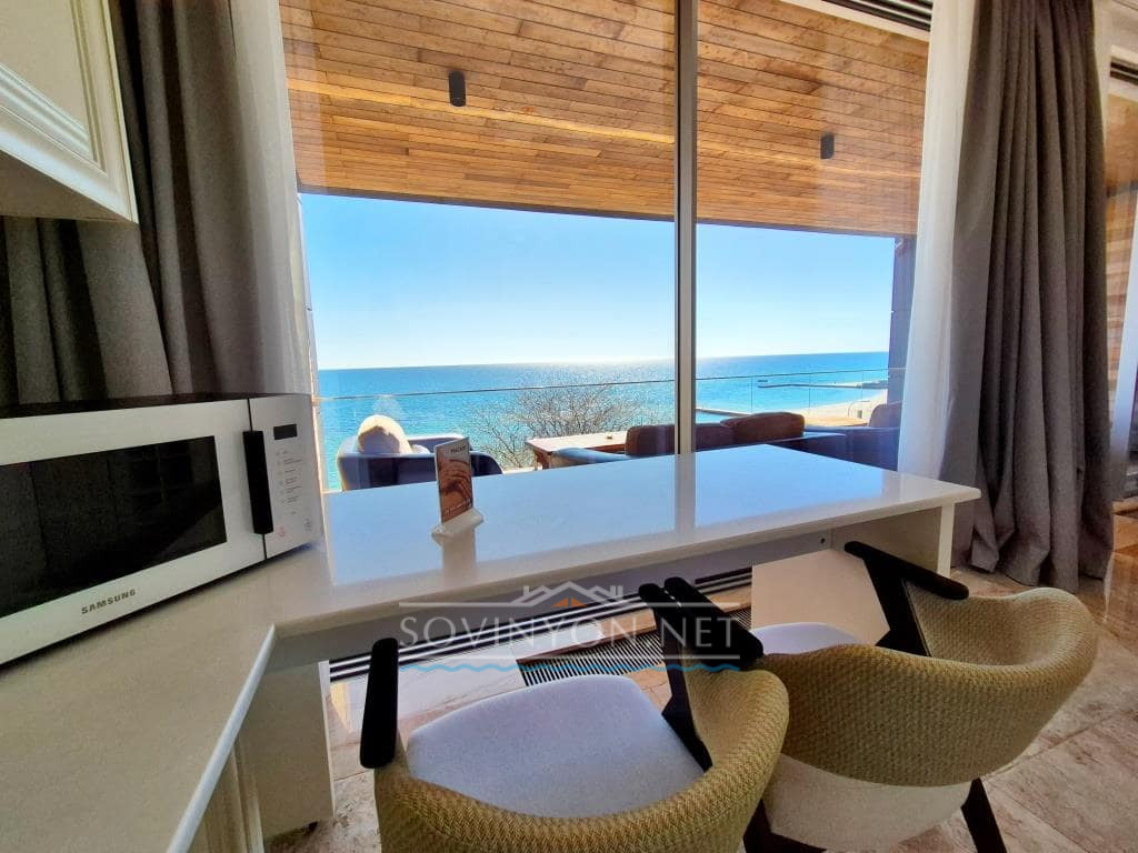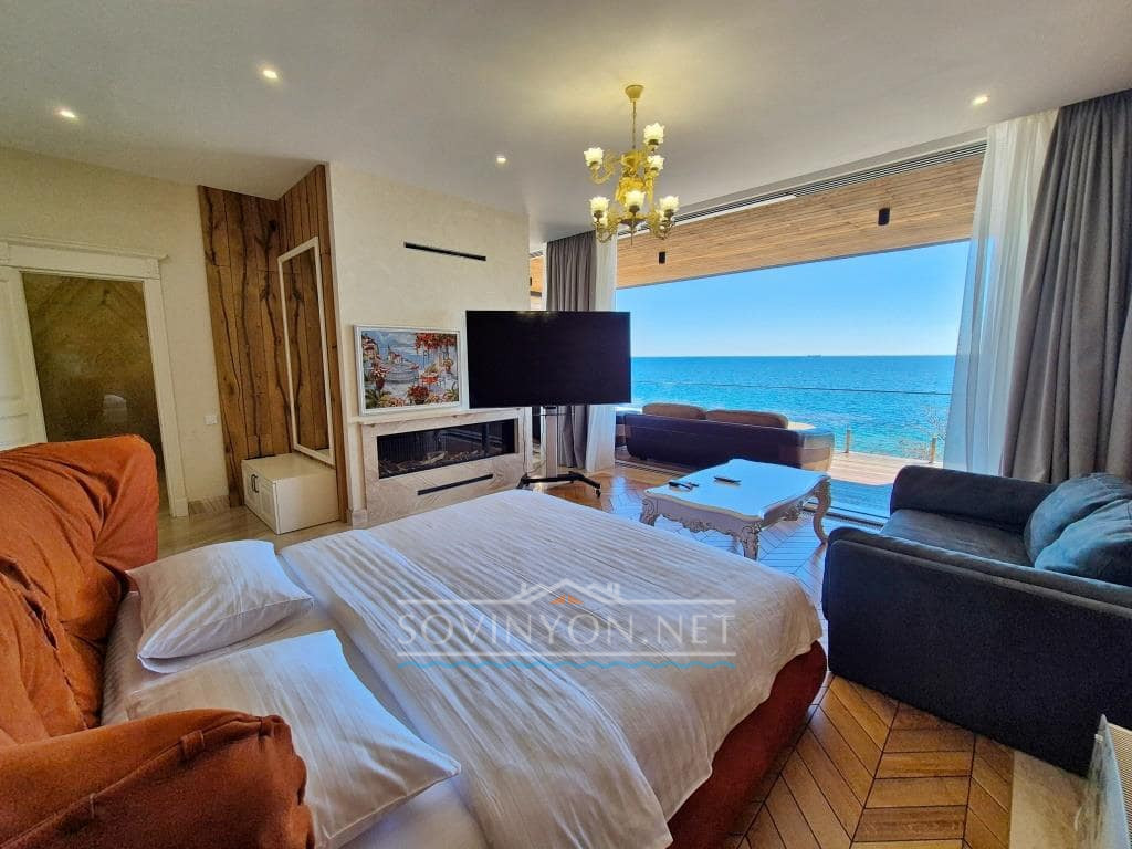 В вашем распоряжении двуспальная кровать King size с шикарным прямым видом на море, диван, кондиционер, Smart TV, Wi-Fi, кухня оснащённая всем необходимым( холодильник, газовая плита, микроволновая печь, духовой шкаф, чайник и т.д).