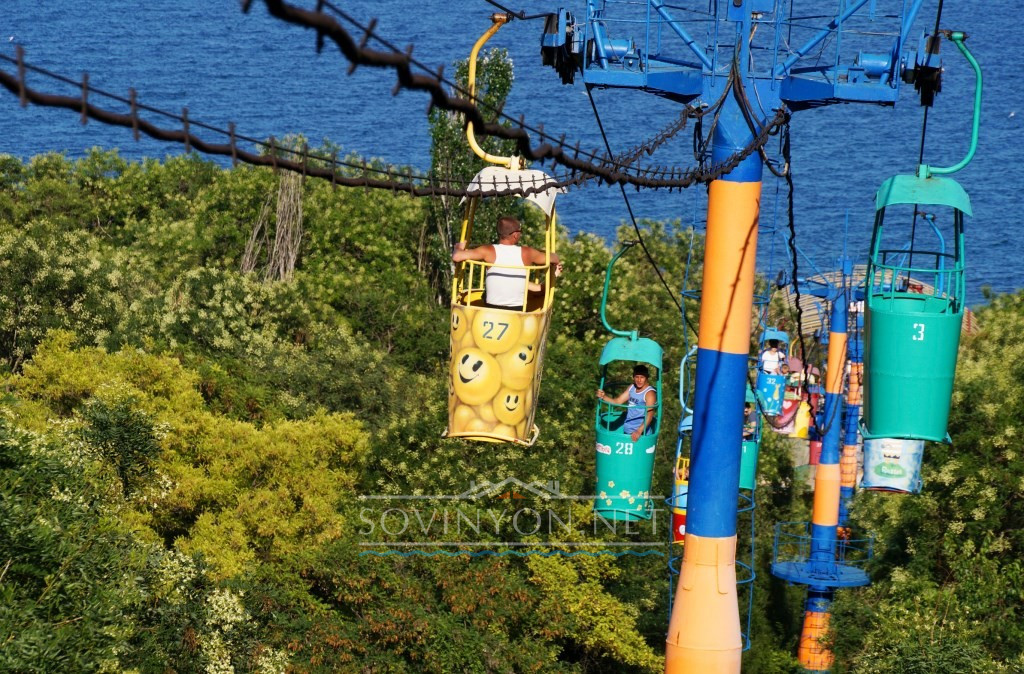 С другой стороны – это хороший памятник советскому прошлому. Т.к. сами кабинки не менялись с тех лет, и вы почувствуете себя ничуть не хуже, чем на колесе обозрения в парке Шевченко. Кабинку будет слегка покачивать – и в целом, кроме того, что вы сможете насладиться прекрасным видом вокруг, вы получите дозу адреналина.