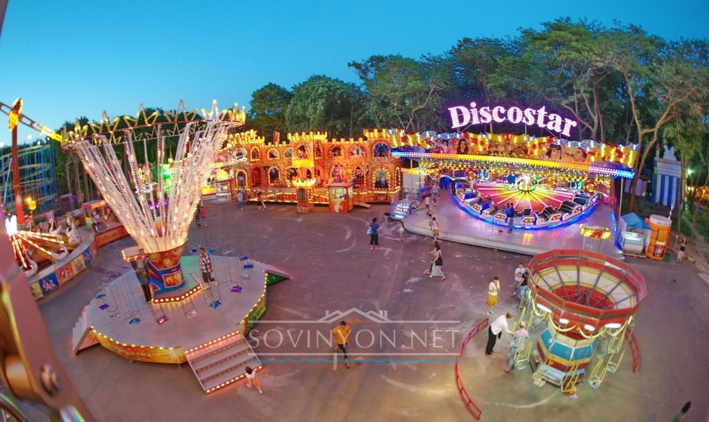 А знаете в чем его фишка? Во-первых, одни из самых быстрых американских горок в Украине. Довольно неплохая комната страха. Ну и конечно колесо Обозрения.