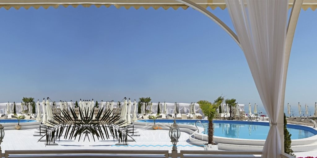 К услугам отдыхающих бассейн, заботливо оборудованная площадка для детских игр, SPA-салон — все услуги платны. Бесплатны только вход на пляж, душ, раздевалка и туалет. Есть пункт проката водных скутеров и гидроциклов. За беседки, топчаны, зонты, шезлонги и полотенца тоже нужно платить. Свободных участков для отдыха на песке практически нет.