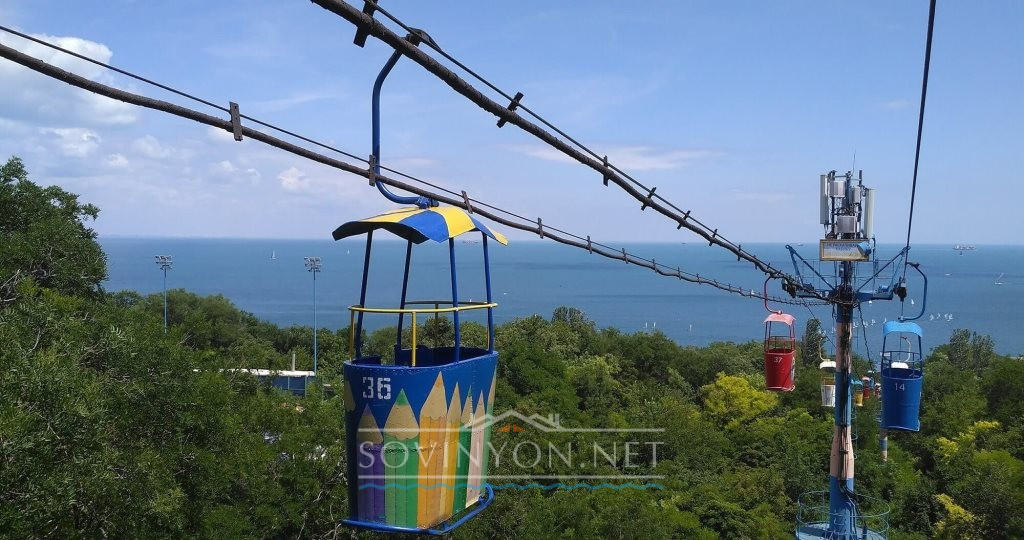 Но вернёмся к Мавританской арке. За ней любимица гостей города — канатная дорога. 425 метров за 5 минут и 70 гривен. А пока яркий вагончик проплывает на Трассой здоровья и теннисными кортами, можно вдоволь налюбоваться зарослями акаций, платанами и синей морской гладью, переливающейся в солнечных лучах.