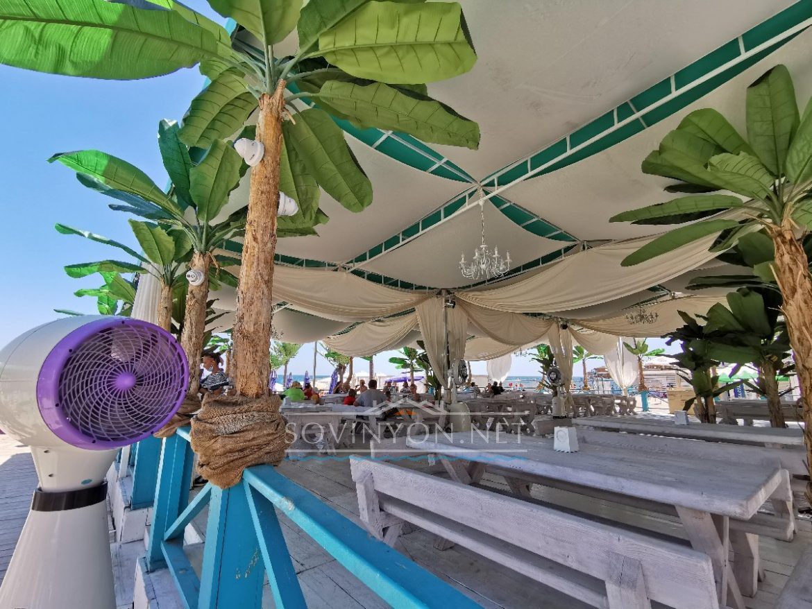 На пляже установлены около трёхсот шезлонгов, несколько больших кроватей и шатров — за аренду нужно платить. Внутри клуба — ресторан и бар, дискотеки порой до утра, но только в выходные и праздничные дни. Кальян подают прямо на пляже. Недостаток — у клуба нет бассейна, но он не кажется таким уж значительным, ведь море рядом, дно мягкое, песчаное, берег регулярно очищается.