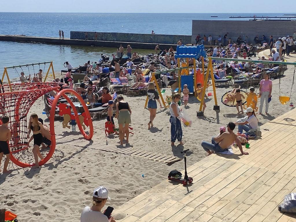 Бесплатный пляж с продуманной современной инфраструктурой — душевыми, раздевалками, площадками для игр, идеален для отдыха с детьми. На территории есть уютное кафе, где можно перекусить, выпить кофе и побаловать детей мороженым.