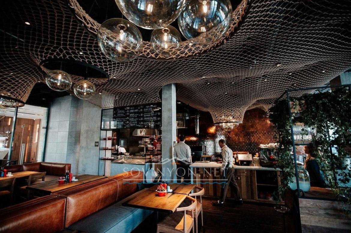 Интерьер подводного царства: металлическая чешуя на стенах, стилизованные рыбацкие сети под потолком, люстры в виде стремящихся вверх пузырьков воздуха. Постоянные посетители привыкли видеть, как шеф-повар или сам Либкин разделывает огромного тунца на открытой кухне, сашими и стейки сразу из-под ножа — традиция.