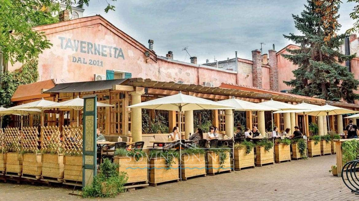 Рядом с синагогой и в двух шагах от легендарной «Книжки», книжного рынка, на котором, по слухам, можно купить всё — от юаней до миномётов, на перекрёстке Екатерининской и Еврейской находится итальянский ресторан «Тавернетта». В 2013 году заведение получило «Золотую пальмовую ветвь ресторанного бизнеса» от The Leaders Club International и было названо лучшим концептуальным рестораном Украины.