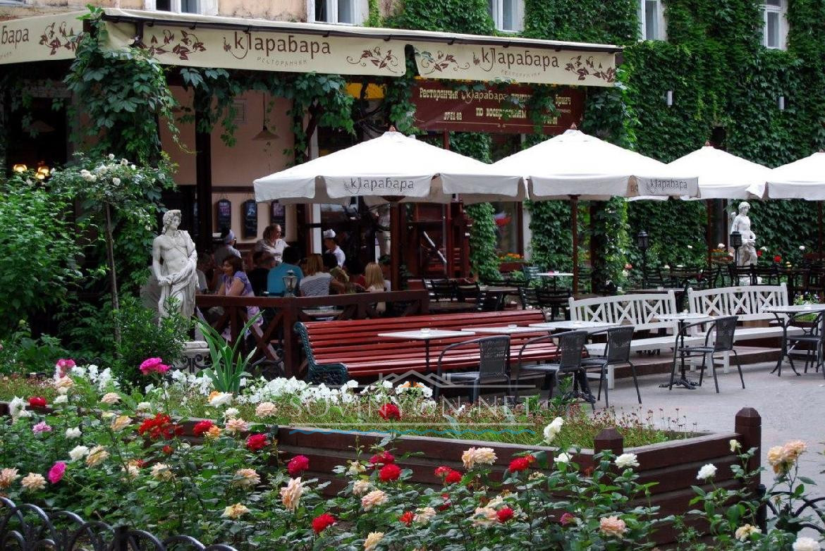 Под сенью деревьев старого сада, заложенного в 1803 году Феликсом де Рибасом, в двух шагах от знаменитого «Дерева любви» Михаила Ревы и в трёх — от самой знаменитой одесской улицы, находится небольшой с виду ресторанчик «КлараБара». Похожее на дразнилку название имеет вполне логичное объяснение: лет сто тому назад, а точнее — в начале прошлого века, когда одесситы обменивались гастрономическими впечатлениями о кофе Фанкони, на этом месте был павильон искусственных минеральных вод. Распорядительница павильона Клара Виндт, приятельница знаменитого авиатора Сергея Уточкина, была остра на язычок, любила велосипедные прогулки и окружение из известных и уважаемых людей. Это её велосипед припаркован у входа в ресторан, и говорят, что именно на нём Сергей Уточкин на спор съехал с Потёмкинской лестницы.