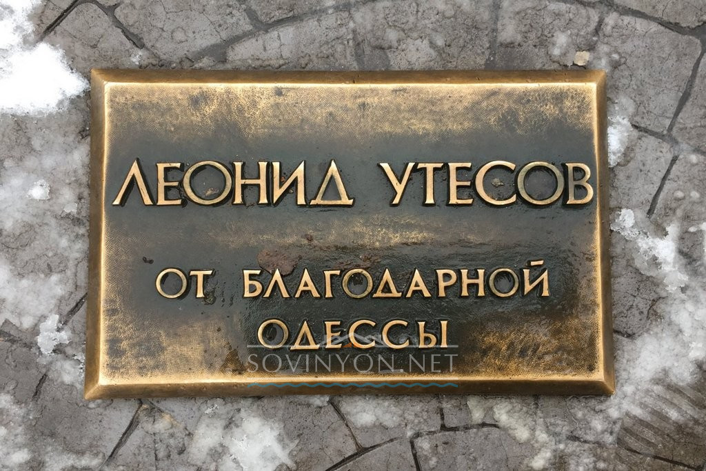 Вальяжный и добродушно-улыбчивый Утёсов сидит на скамейке посреди Дерибасовской и будто ждёт собеседника «поговорить за жизнь». Можно присесть рядом, сфотографироваться, а дотронувшись до шарфа — даже заручиться удачей, тем самым «одесским счастьем».