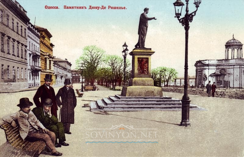 А ведь памятник в центре Приморского бульвара и вправду «номер раз» — бронзовый монумент градоначальнику Одессы с1803 по 1814 год, герцогу Эммануилу де Ришелье, появился на бульваре в 1848 году и был первым в городе. Герцог уехал из Одессы во Францию в 1814 году, а в 1822-ом его приемник граф Ланжерон сообщил одесситам о смерти Ришелье.