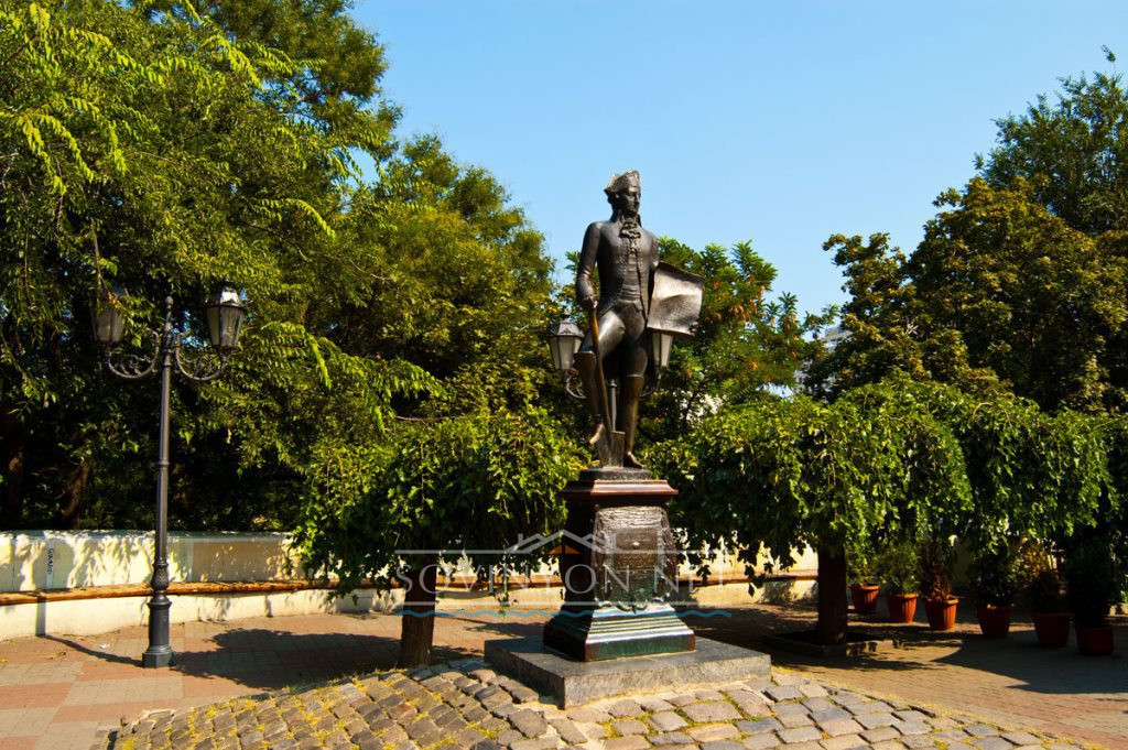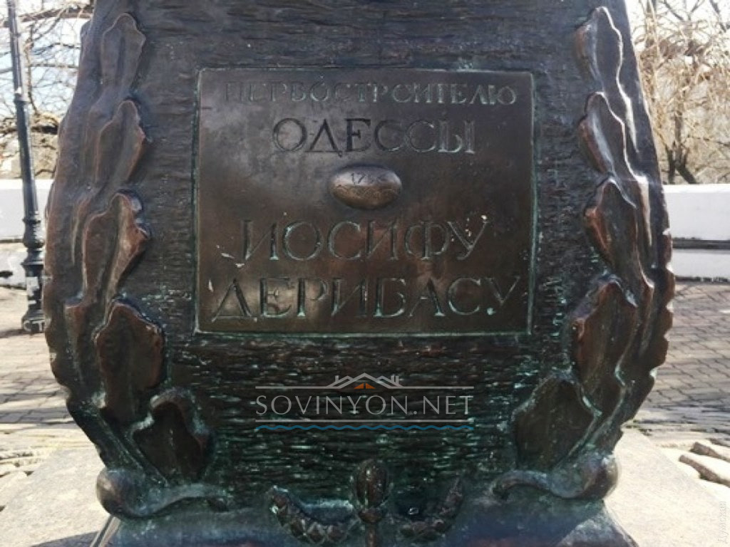 Надпись на постаменте исчерпывающе лаконична: «Первостроителю Одессы — Иосифу Дерибасу».