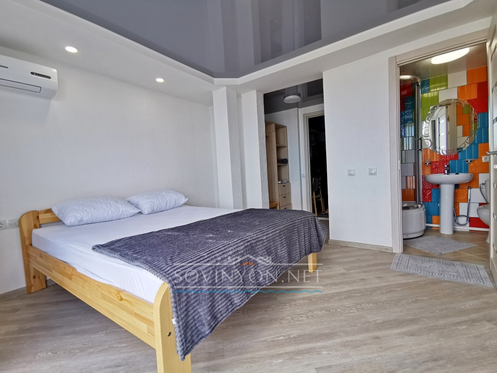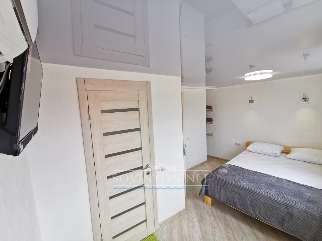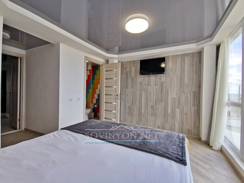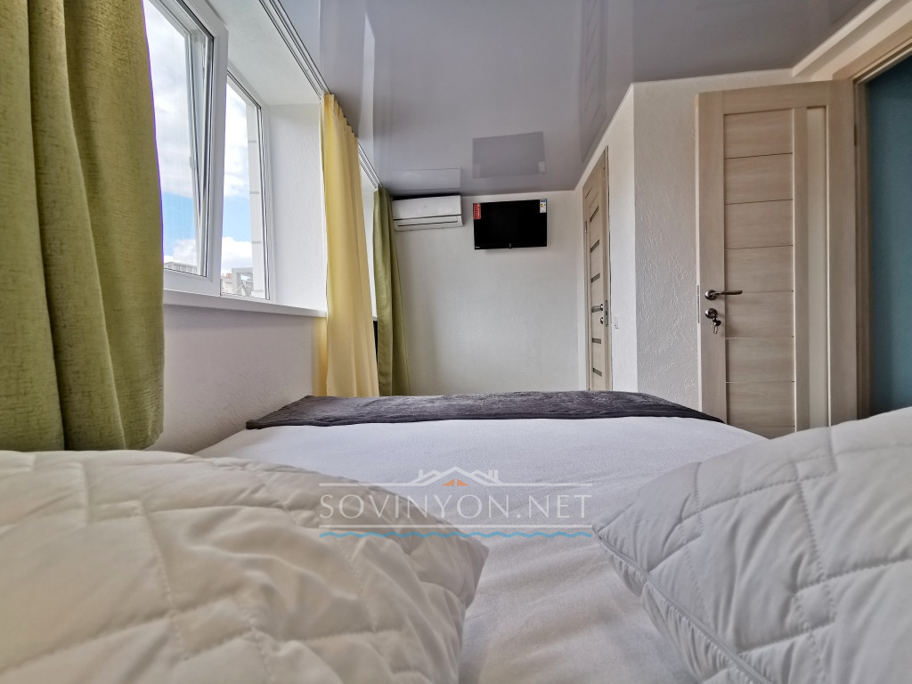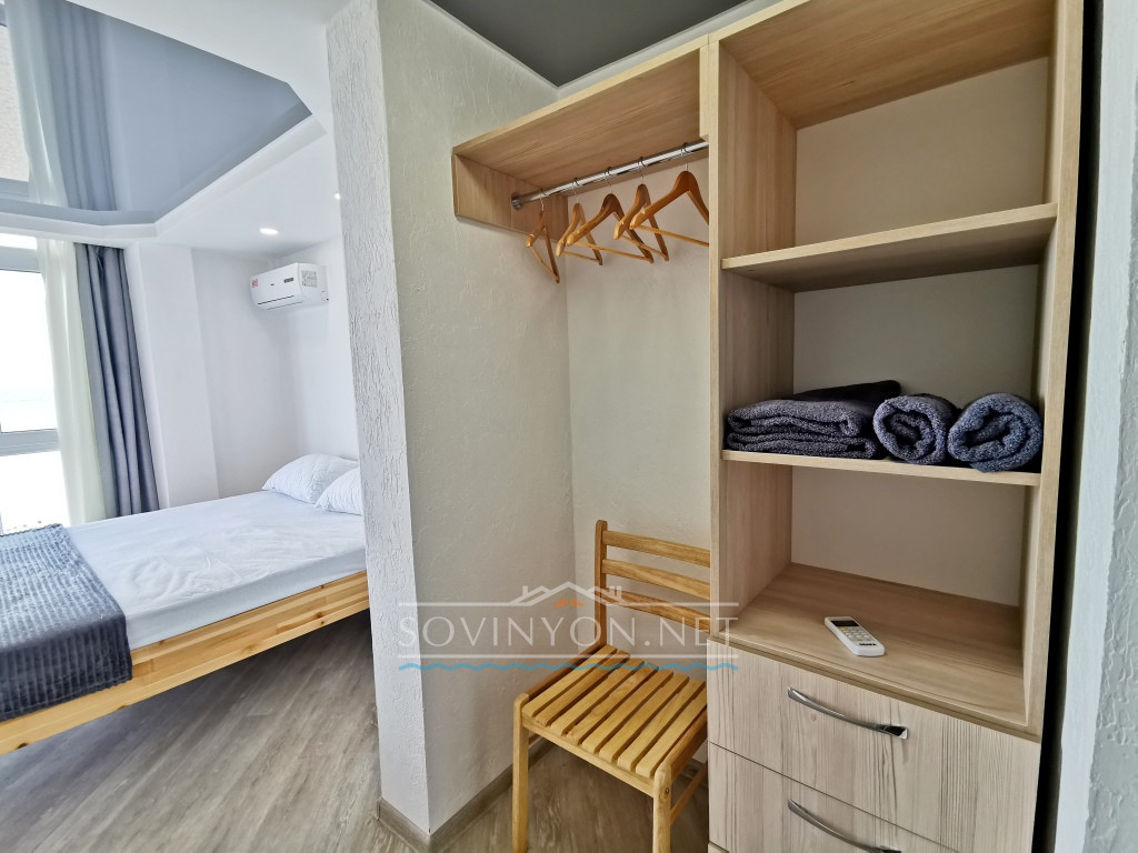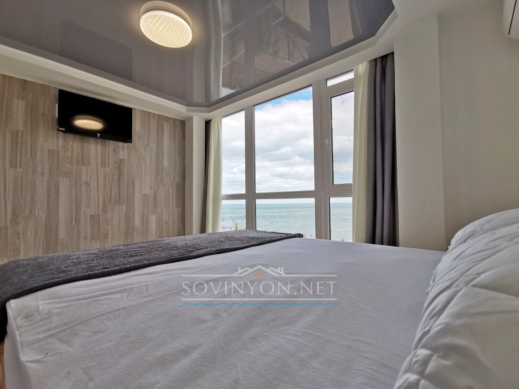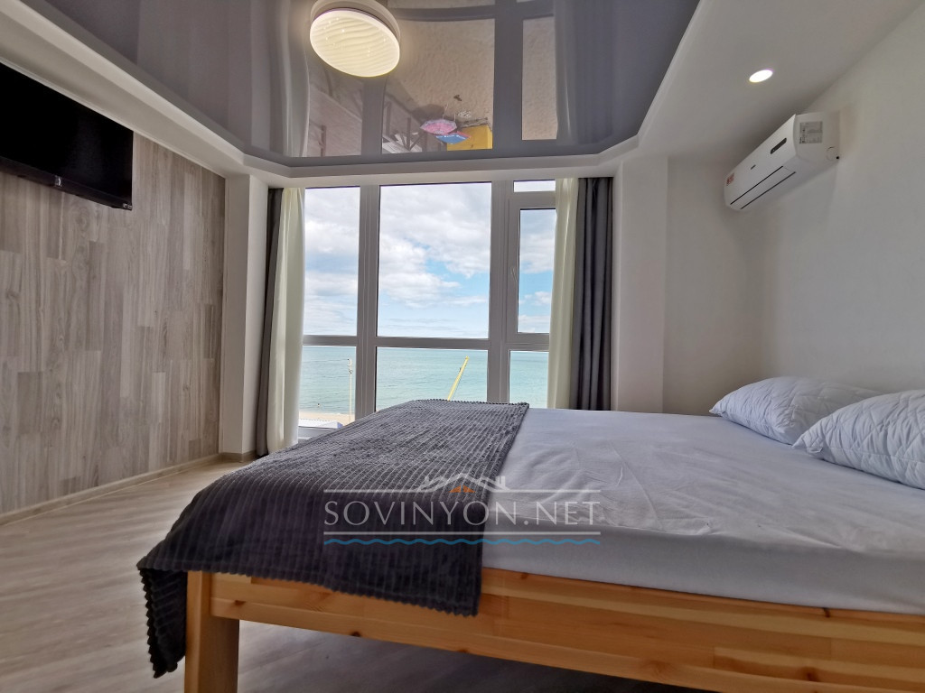Апартаменти знаходяться в першій лінії від моря і складаються з двох роздільних спалень. У кожній спальні є двоспальне ліжко з ортопедичним матрацом євростандарту, свій санвузол (туалет, душова кабіна, умивальник), смарт TV, кондиціонер.